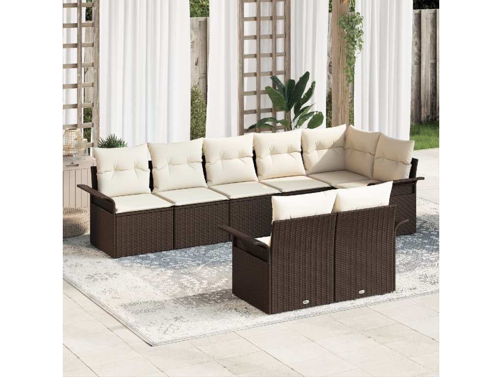 Prémiové materiály: Vysoce kvalitní poly ratan dává tomuhle setu stylový pletený vzhled, který obohacuje každý venkovní prostor. Poly ratan je známý svou odolností vůči počasí, takže pohovka zůstane krásná a funkční celou sezonu. Integrované komponenty: S práškově lakovaným rámem z oceli nabízí pohovka silnou oporu a dlouhou životnost. Měkké polštáře z pěny a polyesteru vám zajistí maximální pohodlí, takže si budete moct užívat odpočinek venku. Adaptabilní funkce: Jako modulární set lze tento nábytek jednoduše přeskládat do různých konfigurací. Zakřivené opěrky rukou a elegantní design zádové opěrky ještě víc zvýrazňují jeho krásu a zajišťují pohodlné sezení. Multifunkční použití: Skvělý na zahradu nebo terasu, set pohovek se hodí do moderního venkovního prostředí. Jeho variabilita z něj dělá ideální volbu pro lenošení, rodinné setkání nebo stylovou dekoraci pro zahradní párty. Snadná údržba: Doporučené pokyny radí používat kryty, když se nábytek nepoužívá, a polštáře přenášet dovnitř při špatném počasí. Tyto tipy pomáhají udržet vzhled setu pěkný a slibují užívaní sezónu po sezóně.- Barva: Hnědá