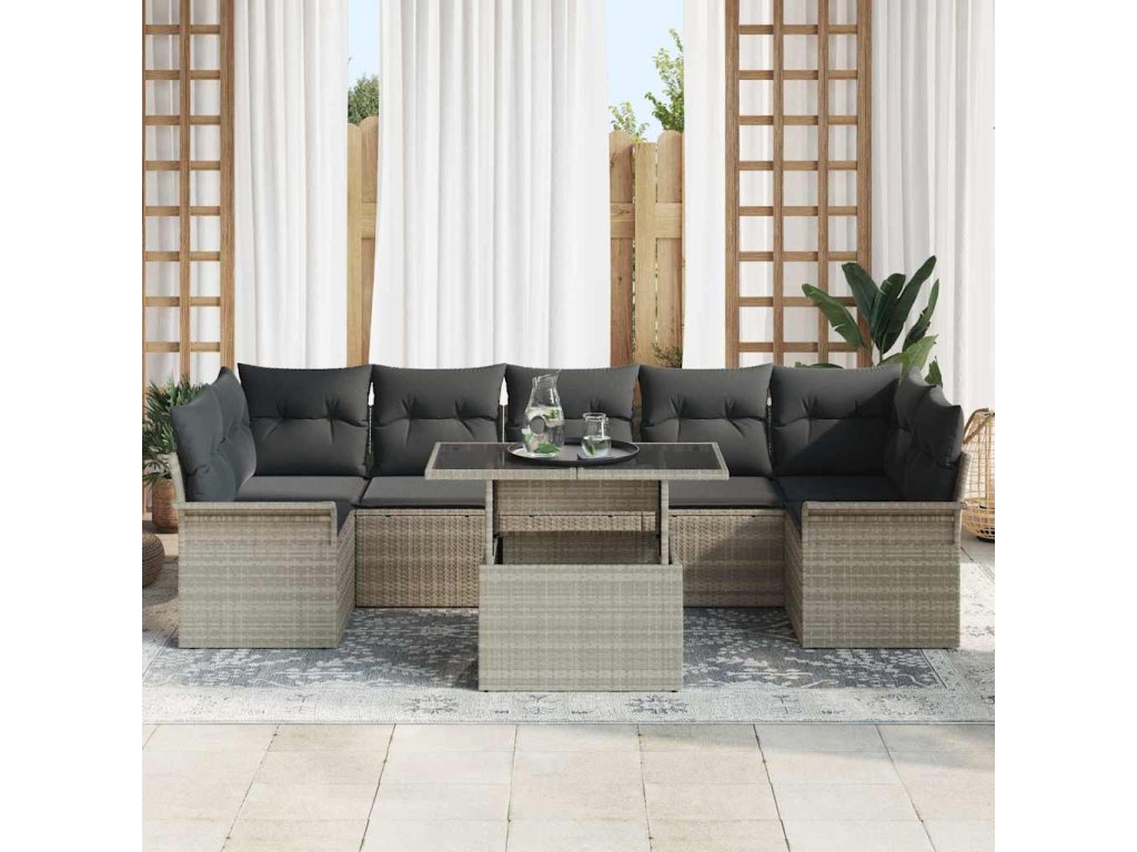 Sada zahradních pohovek 8 pcs Světle šedá Poly ratan