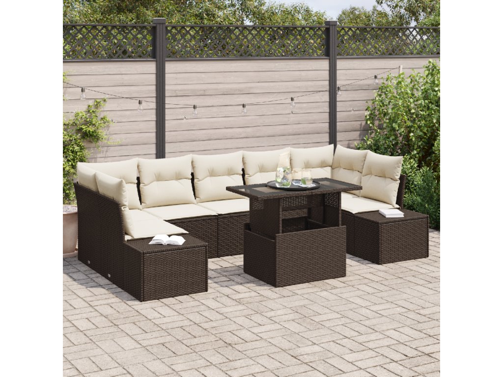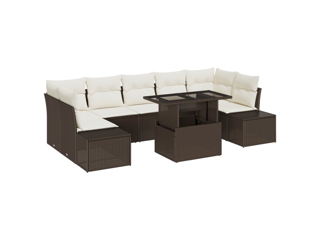 Set pohovek s polštářem 8 pcs Hnědá a krémová polyratan