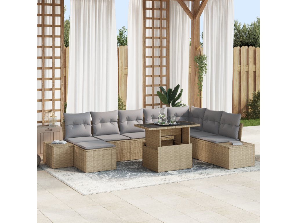 Sada zahradních pohovek 9 pcs Béžová a Světle šedá polyratan