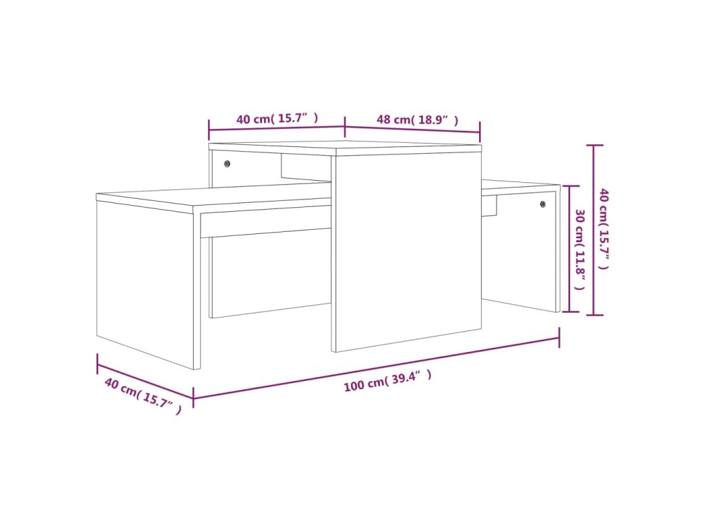 - Rozměry nižšího stolku: 100 x 40 x 30 cm (D x Š x V)