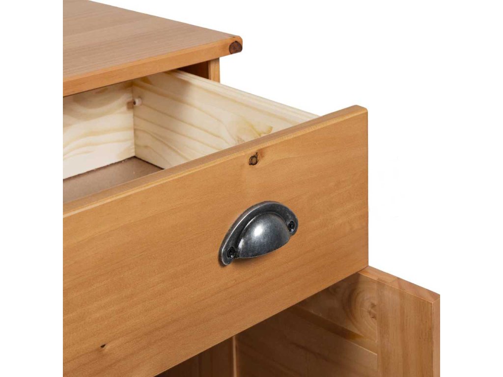 - Rustikální dřevěný povrch: Tato komoda předvádí přirozené struktury masivního borového dřeva a její opotřebovaný vzhled jí dodává charakter a zachovává eleganci.