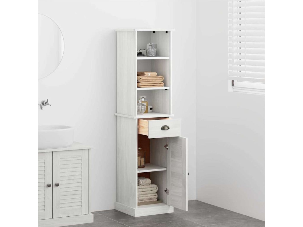 - Rustikální estetika: Vdechněte své koupelně nádech rustikálního kouzla. Přírodní, drsná krása nábytku je zvýrazněna jeho teplým povrchem, vyvolávajícím pocit nadčasové elegance, která se bez problémů mísí s různými koupelnovými dekoracemi. Užijte si estetický ráz masivního borového a dřevovláknitého dřeva, které přináší venkovního ducha dovnitř.