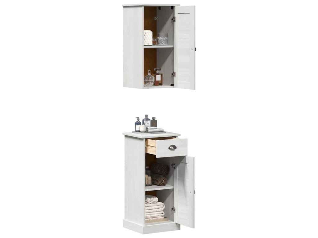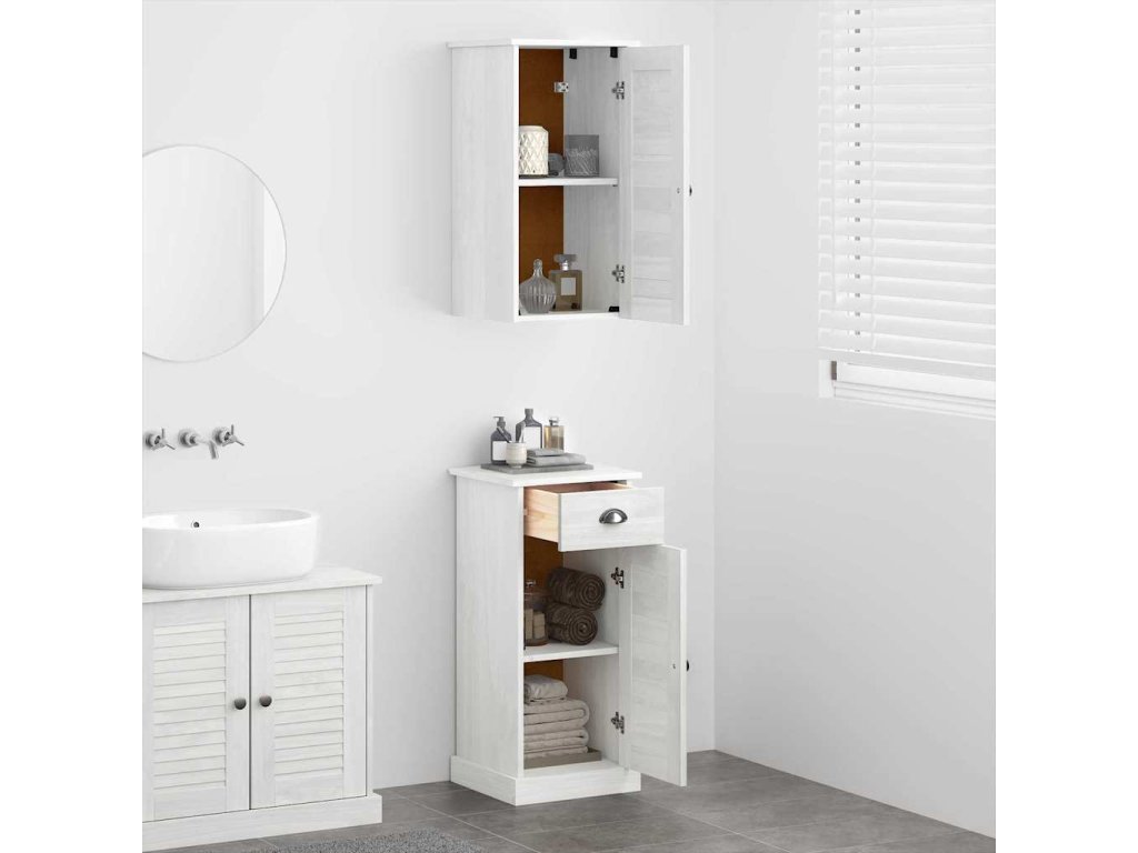 - Materiály: Vyrobený z masivního borovicového dřeva, je tenhle kabinet odolný a navržený, aby vydržel, a přitom dává vaší koupelně rustikální vibe. Kombinace dřeva a kovových prvků vytváří silnou podporu s nadčasovým stylem, hodící se do různých designů.
