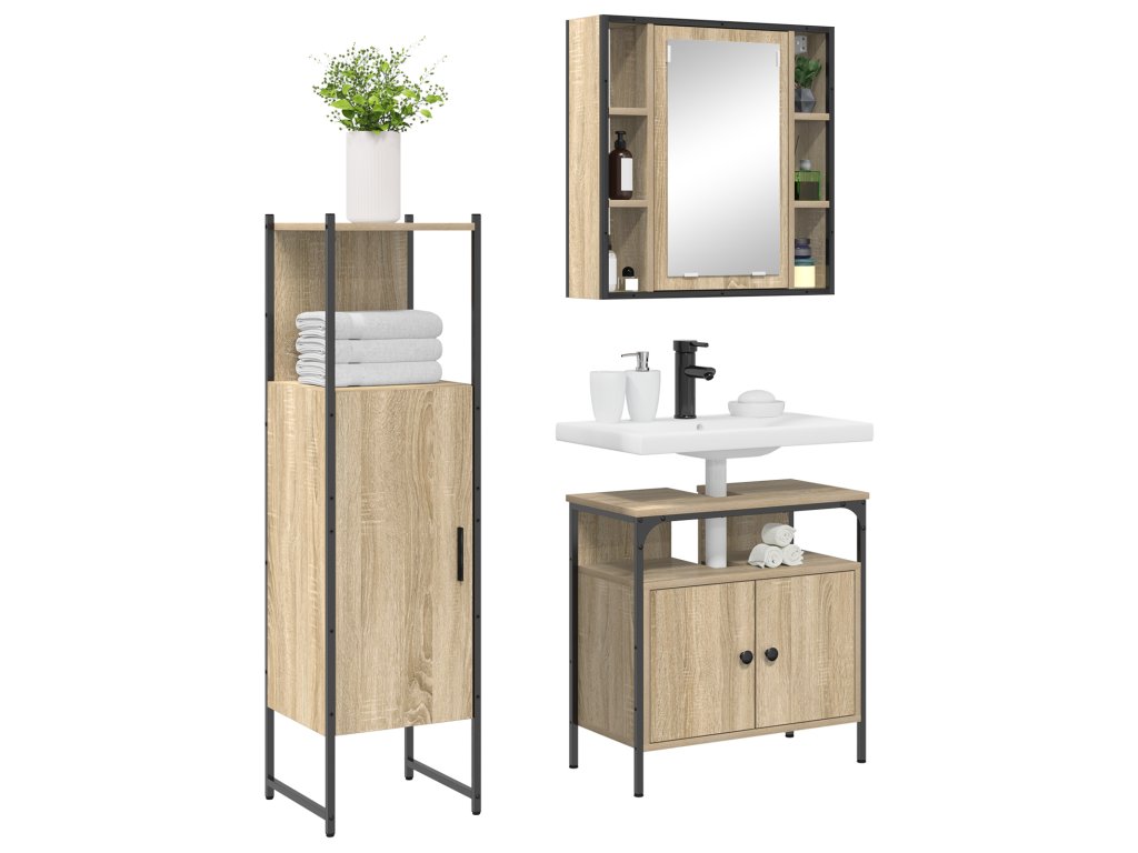 - Součásti zahrnuté: V sadě je zrcadlová skříň, skříňka pod umyvadlo a prostorná koupelnová skříň. Každý díl je udělaný tak, aby byl praktický a útulný s dostatkem místa pro uložení věcí, takže máte koupelnu bez chaosu.