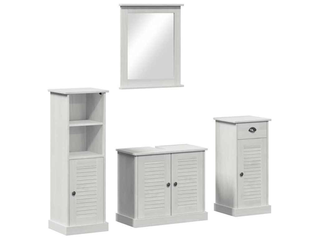 - 1 x skříňka pod umyvadlo. 1 x koupelnová skříň (L). 1 x koupelnová skříň (S). 1 x nástěnná koupelnová skříň. 1 x zrcadlo