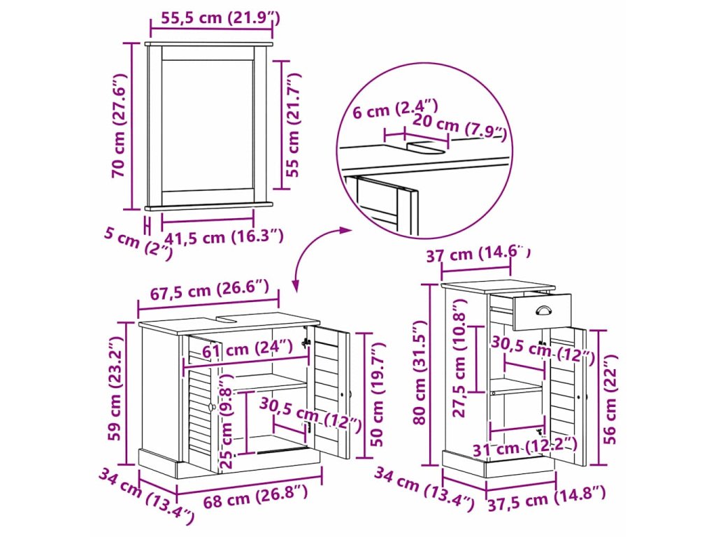 Sada koupelnového nábytku VIGO 3 pcs Hnědá 37 x 34 x 80 cm