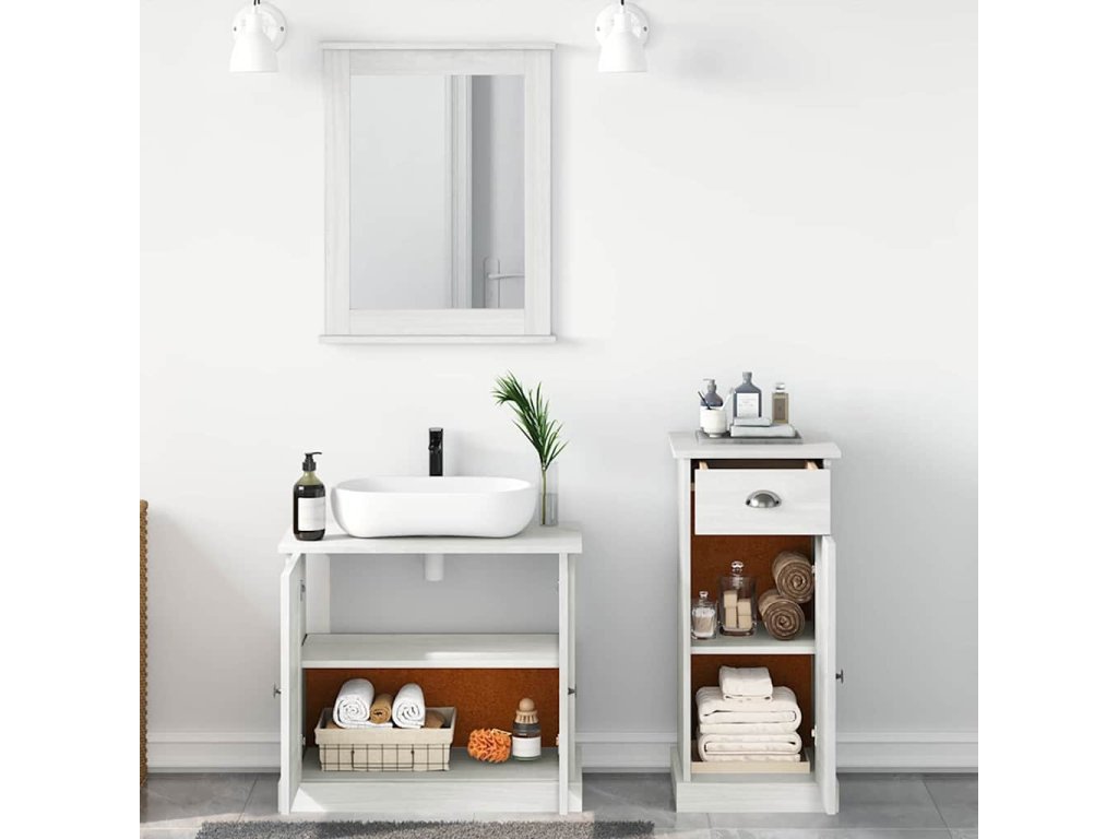 - 1 x skříňka pod umyvadlo. 1 x koupelnová skříň (L). 1 x koupelnová skříň (S). 1 x nástěnná koupelnová skříň. 1 x zrcadlo