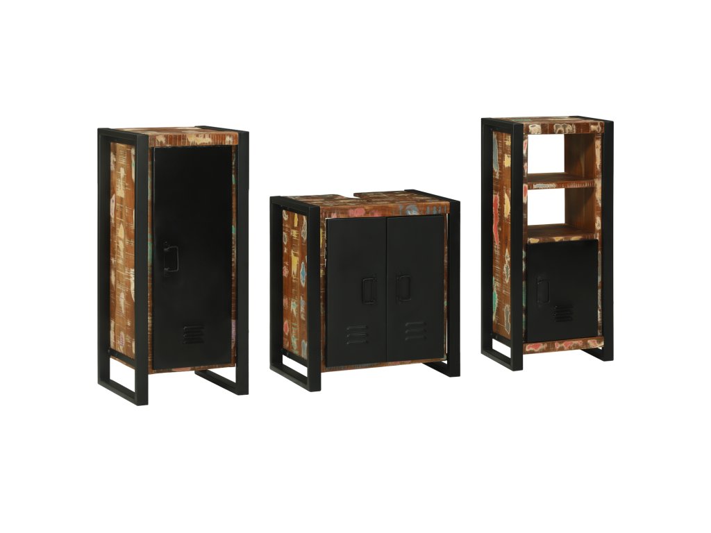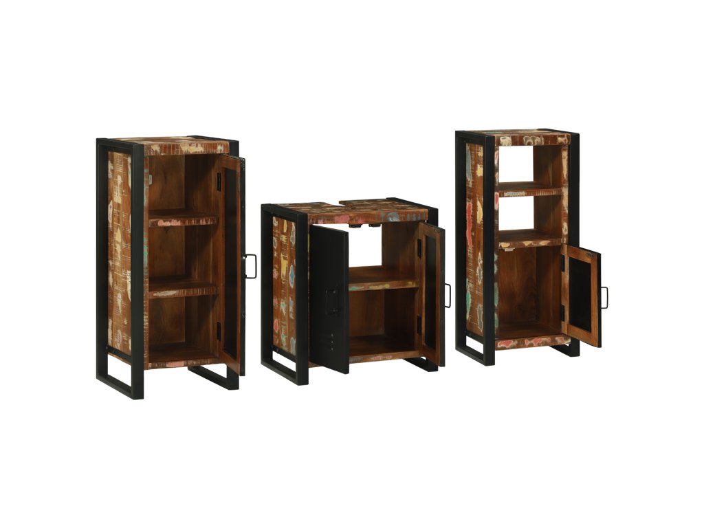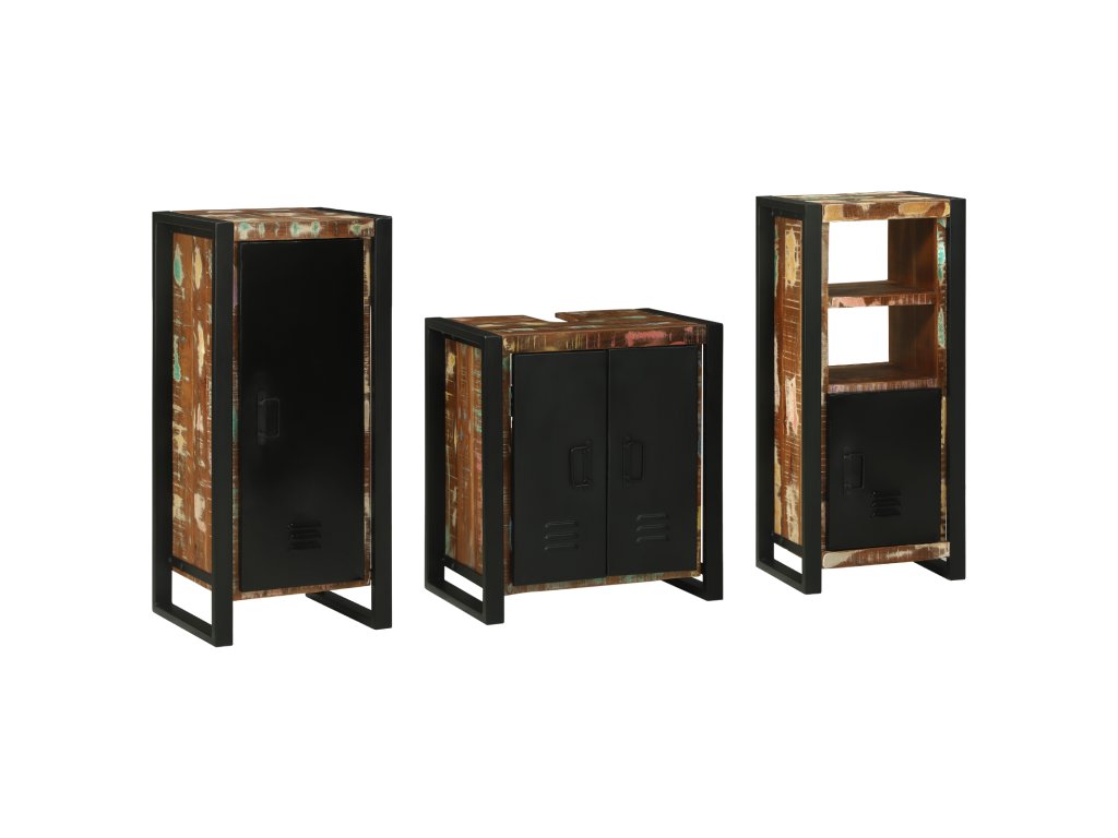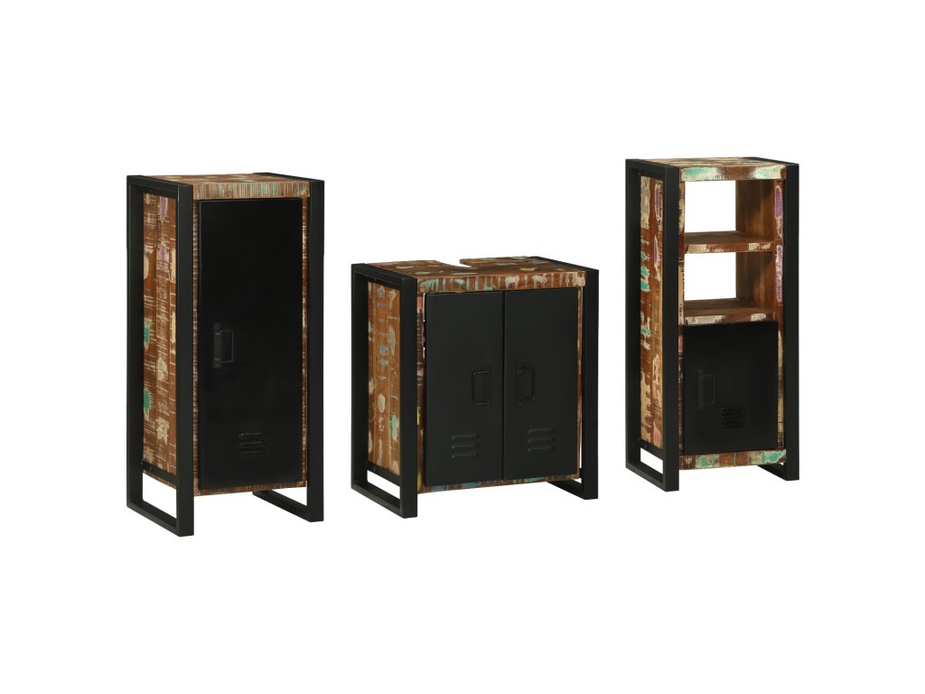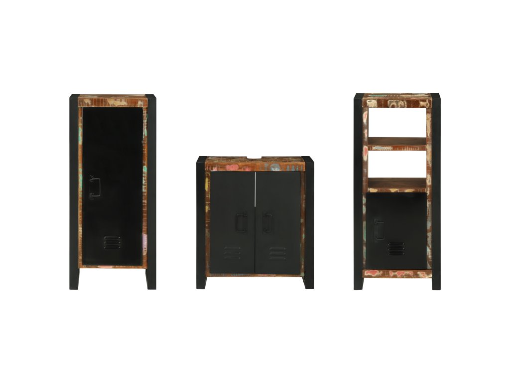 Materiály: Sada koupelnových skříněk kombinuje kvalitní komponenty pro dlouhou životnost. Dveře z masivního dřeva dodávají zajímavý vzhled s variabilními vzory a texturami. Železné nohy zajišťují stabilitu a podtrhují industriální styl. Součásti: Tato sada se skládá z koupelnové skříňky pod umyvadlo, koupelnové skříňky a nástěnné skříňky. Perfektně se vejde do menších prostor a zajistí úložné řešení. Nástěnný design pomáhá efektivně využívat prostor a udržovat uklizené a příjemné prostředí. Funkce / Doplňky / Design: Skříňky jsou navrženy pro maximální praktičnost a vytvářejí multifunkční prostor. Nástěnná montáž šetří podlahu, což je skvělé pro menší koupelny. Zajišťují snadný přístup k nezbytnostem a s industriálním vzhledem zapadnou do různých stylů. Doporučené použití: Tento nábytek je ideální pro moderní byty i klasické domy, které chtějí přenést industriální styl do svých koupelen. Jeho přizpůsobivost zlepšuje atmosféru a spojuje funkčnost s hezkým designem. Péče &údržba: Udržet krásu této sady je jednoduché. Pravidelně otírejte suchým hadříkem, abyste odstranili prach. Vyhněte se nadměrné vlhkosti, aby ustálý vzhled materiálů vydržel co nejdéle. Snadná údržba dodává nábytku nadčasový vzhled.- Barva: Hnědá