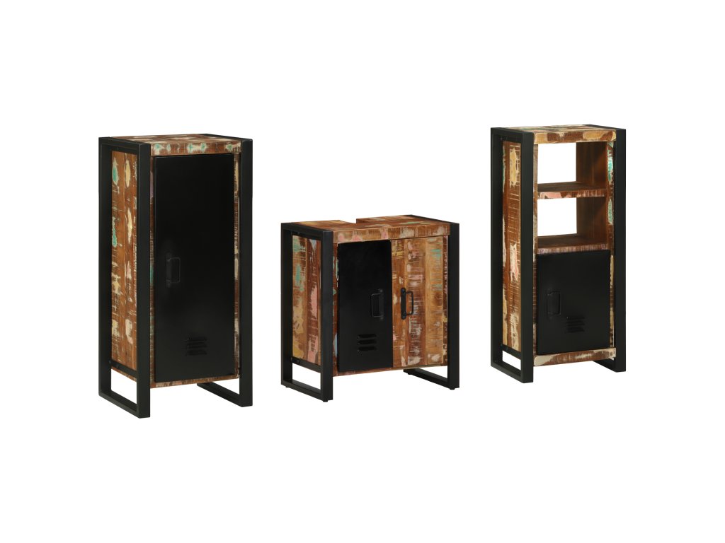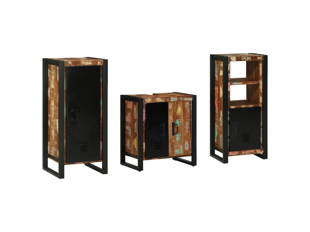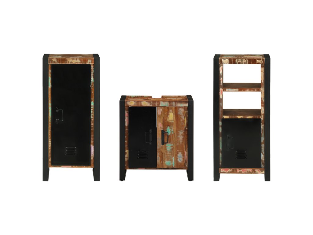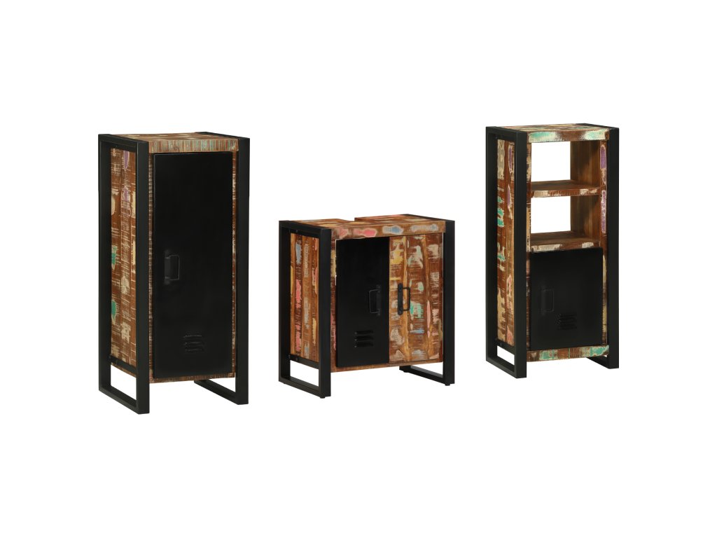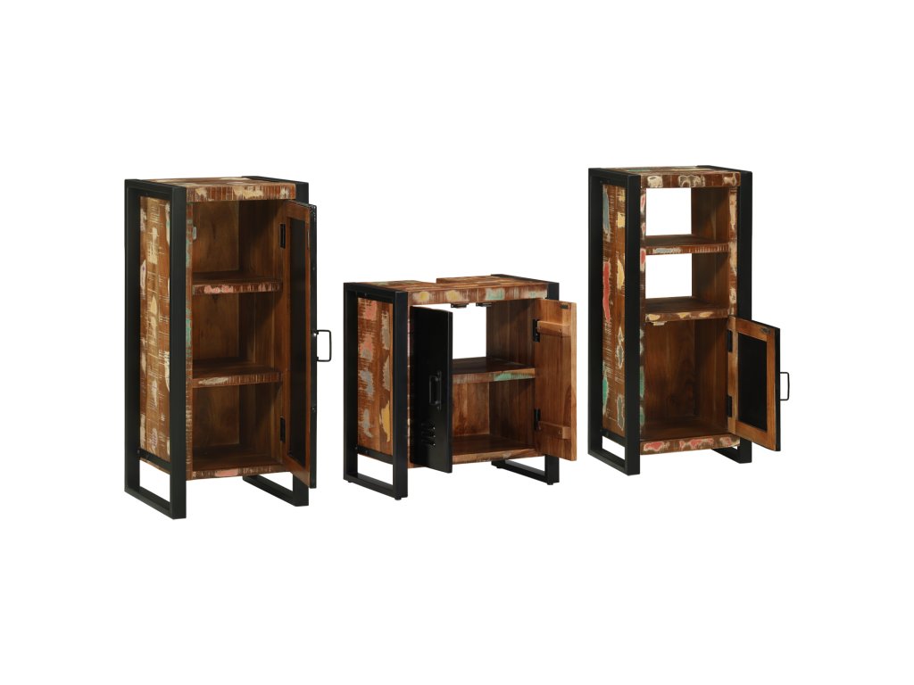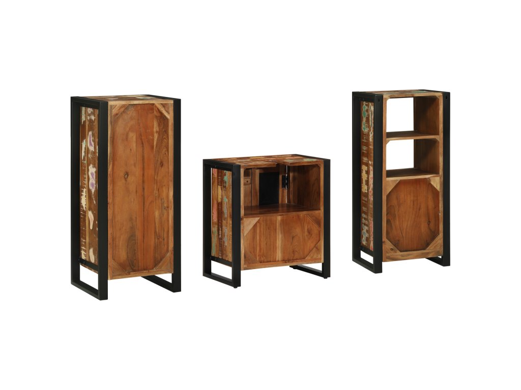Sada koupelnového nábytku 3 pcs Hnědá Masivní obnovované dřevo