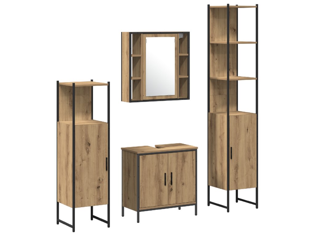 - Postavená z inženýrského dřeva – Tato nábytková sada je odolná, má moderní design a hodí se do každodenního použití. Je snadná na údržbu a její hladký povrch dodává eleganci jakékoli koupelně.