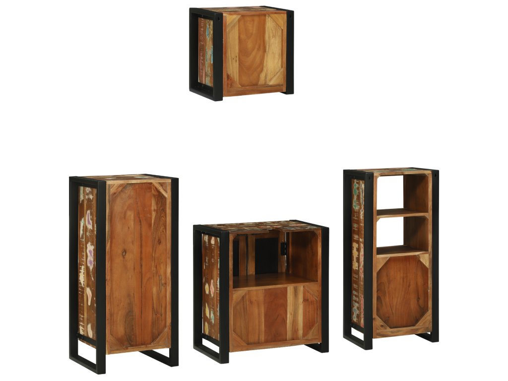 Sada koupelnového nábytku 4 pcs Hnědá Masivní obnovované dřevo