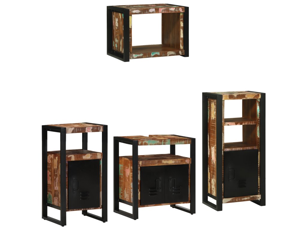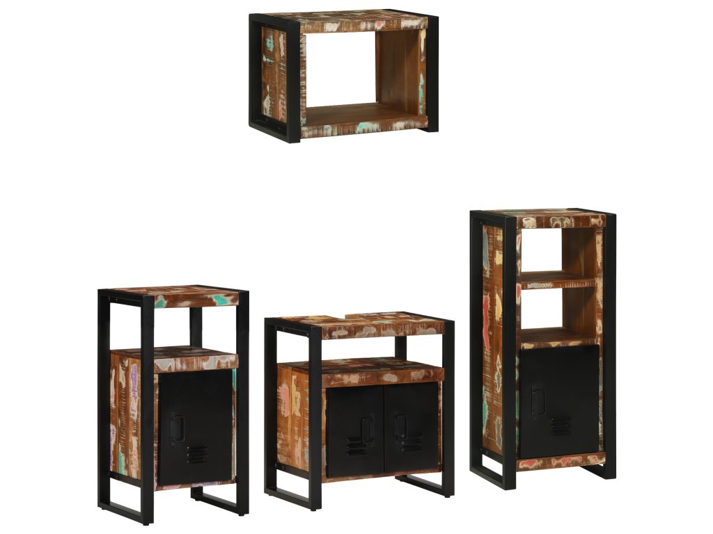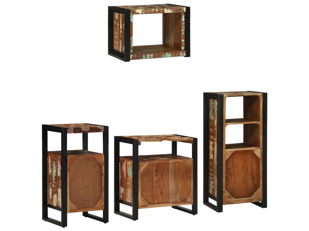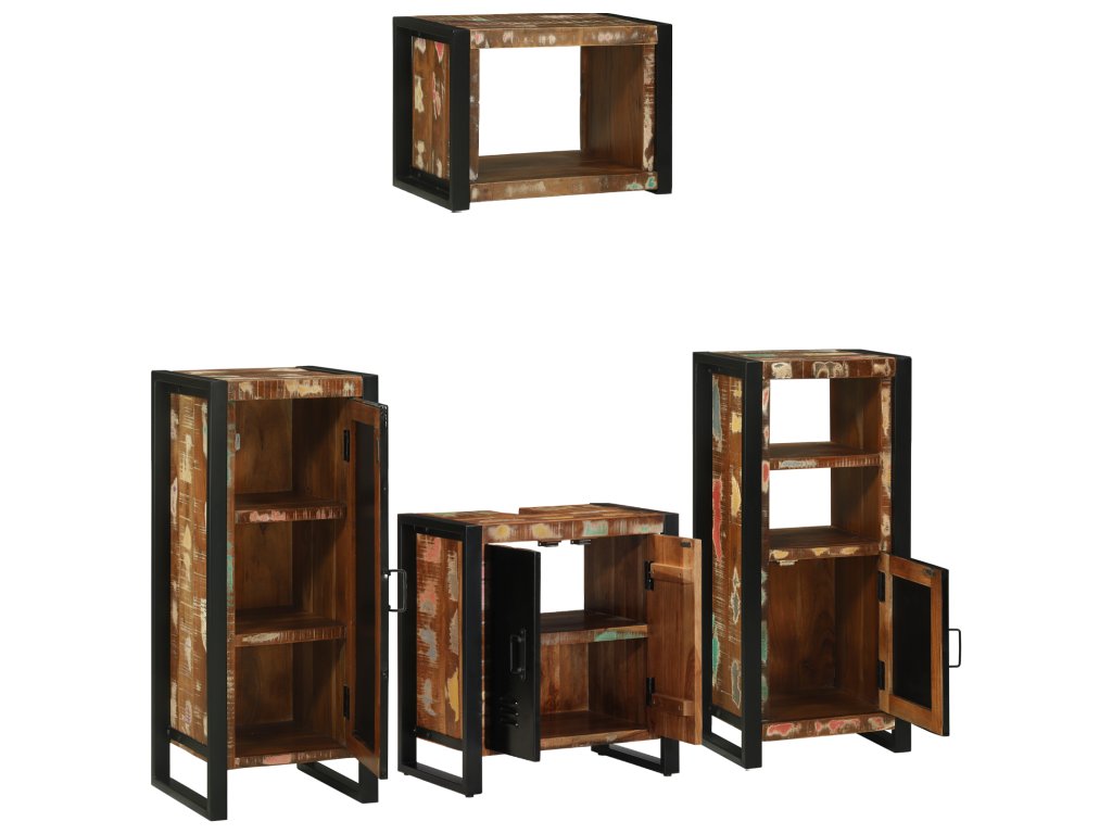 Vysoká kvalita železných nohou Naše koupelnová skříňka má silné železné nohy, které zajišťují stabilitu a podporu. Tato opora dělá skříňky odolné i při častém používání. Nástěnná efektivita Sada má nástěnné části, které šetří prostor a poskytují spoustu úložného místa. Snadná instalace vytváří elegantní vzhled a šetří podlahu, ideální do menších koupelen. Dveře z masivního dřeva Každá skříň má dřevěné dveře, co přidávají krásný vzhled a zajišťují trvanlivost. Tyto dveře dodávají přírodní prvek k industriálnímu stylu, což zaručuje jejich dlouhou životnost. Texturovaný povrch Texturovaný povrch této koupelnové sady přidává zajímavý prvek, který zpevňuje její industriální styl. Je tak nejen krásná na pohled, ale i na dotek, což prohlubuje váš zážitek z koupelny. Dostatek úložného prostoru Navržená s ohledem na prostor, sada zahrnuje různé skříňky, které se hodí pro všechny vaše potřeby. Ať už potřebujete místo na kosmetiku nebo ručníky, je tu prostor na všechno, takže váš prostor je uspořádaný i krásný.- Barva: Hnědá