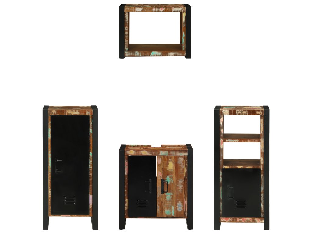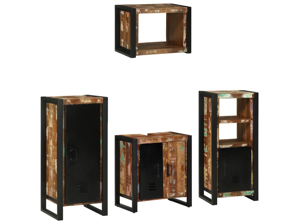 Odolnost materiálu: Skříňka je vyrobená z pevného železa a masivního dřeva, takže bude sloužit dlouho. Její robustní konstrukce snáší každodenní používání a drží se skvěle i ve vlhkém prostředí koupelny. Klid na duši zaručuje její pevnost. Možnosti úložiště: Tato souprava má dostatek úložného prostoru s dvěma skříněmi a policí. Pomáhá organizovat toaletní potřeby, ručníky a další věci, což dělá koupelnu hezčí a přístupnější. Rozmístění skříní je praktické a vypadá skvěle. Nástěnný design: Nástěnné prvky šetří místo na podlaze a přidávají elegantní vzhled. Jsou ideální pro menší koupelny, vytvářejí otevřený a vzdušný pocit. Snížením nepořádku na podlaze zjednodušují úklid a udržují minimalistický vzhled koupelny. Průmyslová textura: Texturovaný povrch přináší hloubku a charakter, což odděluje tuto soupravu od běžného nábytku. Odpovídá průmyslovému stylu a zlepšuje zážitek v koupelně. Udržovací pokyny: Snadná údržba. Stačí utřít hadříkem a udržet nábytek v pěkném stavu. Žádné složité postupy či stres, jen jednoduché údržbové techniky, které zaručí, že skříňky zůstanou skvělé i v namáhaném prostředí.- Barva: Hnědá
