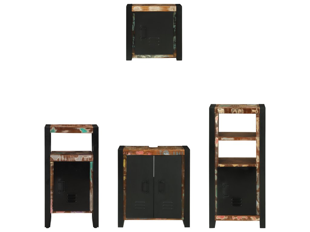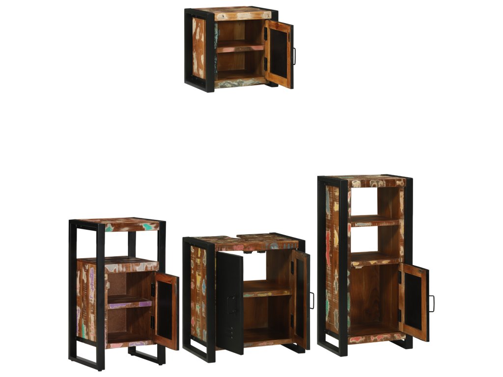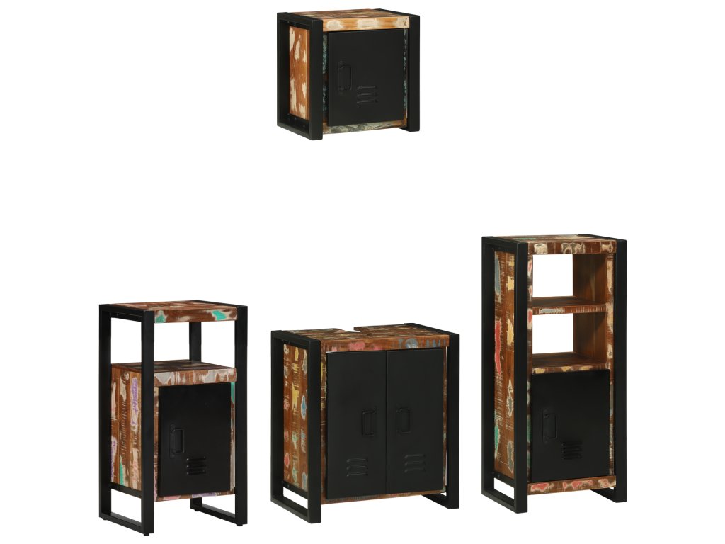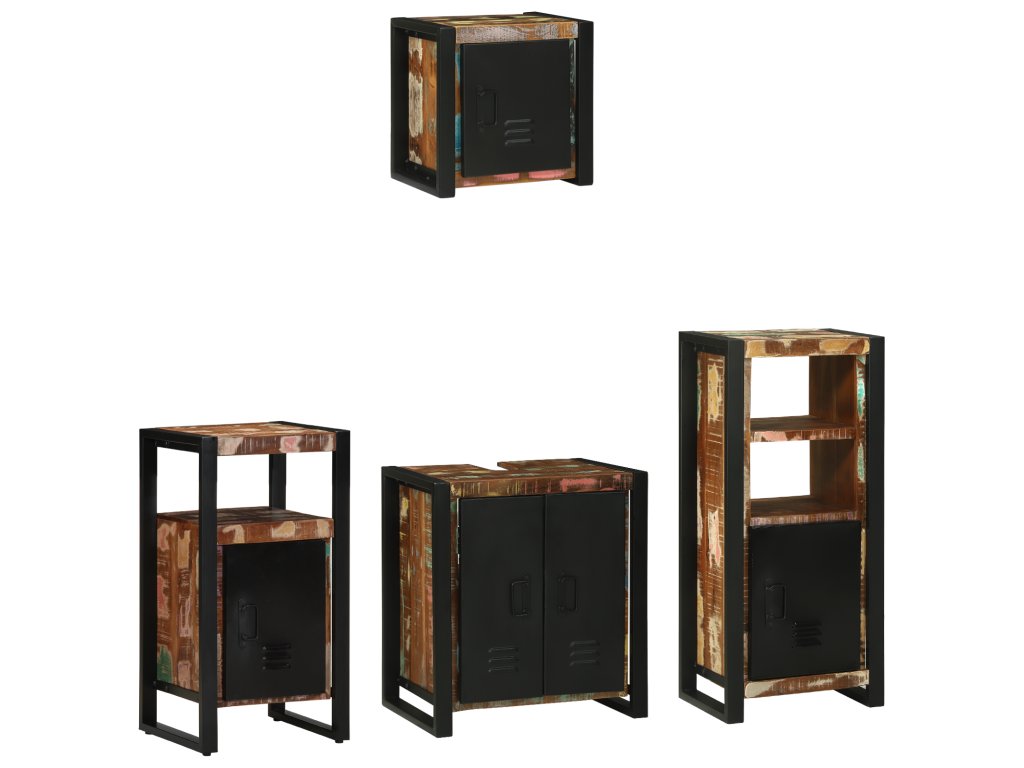 Tato průmyslová sada koupelnových skříněk spojuje formu a funkci, ideální pro přidání stylu a úložného prostoru do vašeho interiéru. S výrazným obdélníkovým tvarem představuje moderní industriální design s texturovaným povrchem, vyzařující elegantní městský vibe, co připomíná chic sklady a loftové byty.