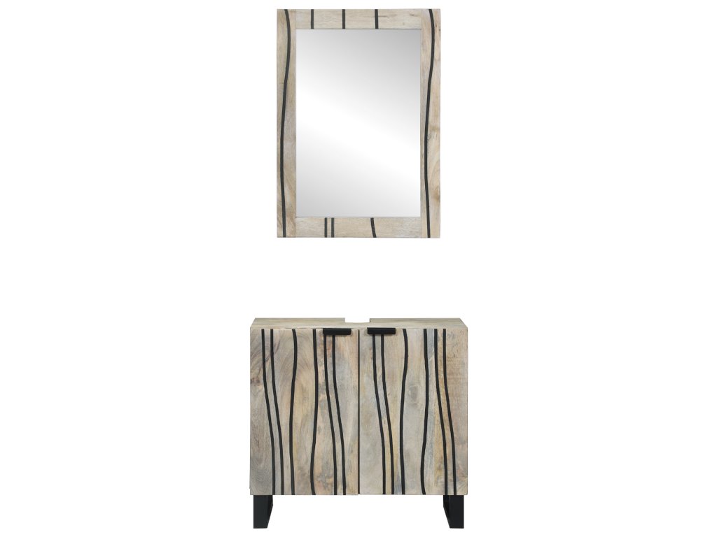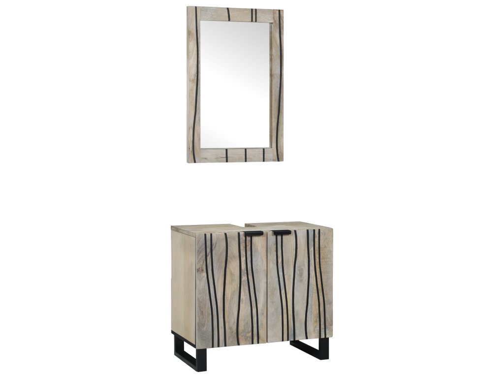 Materiály: Tenhle moderní koupelnový set je z kvalitního inženýrského dřeva. Je pečlivě vybrané pro svou dlouhou životnost a hezký povrch, takže dodá tvojí koupelně vizuální nádech. Výsledkem je set, který je trvalé řešení pro ty, kdo chtějí vylepšit vzhled své koupelny. Součásti: Set obsahuje moderní zrcadlo o rozměrech 50 x 70 cm, které jasně odráží tvůj vzhled. Dále je tu skříňka pod umyvadlo o rozměrech 62 x 33 x 58 cm s flush dveřmi a police, které nabízejí prostorné úložiště pro všechno potřebné, plus pevné černé kovové nohy. Vlastnosti a funkce: Jedna z nejlepších věcí na tomto setu je jeho obrovská úložná kapacita, což znamená, že všechny koupelnové předměty budou na svém místě a lehce přístupné. Elegantní flush dveře dodávají hladký vzhled, a material inženýrského dřeva zaručuje trvanlivost a snadnou údržbu. Doporučené použití: Skvělý pro koupelny, co chtějí moderní vzhled, tenhle set spojuje styl a funkčnost a přitom nabízí hodně úložného prostoru. Je ideální pro domácnosti, které hledají hezké a soudržné estetické řešení v rušné koupelně nebo klidném prostoru pro relaxaci. Údržba a péče: Set se lehce udržuje a můžeš ho otírat vlhkým hadříkem, aby zůstal hezký a čistý. Takhle jednoduše zajistíš, že tvá koupelna bude pořád na úrovni po celý rok.- Barva: Bílá