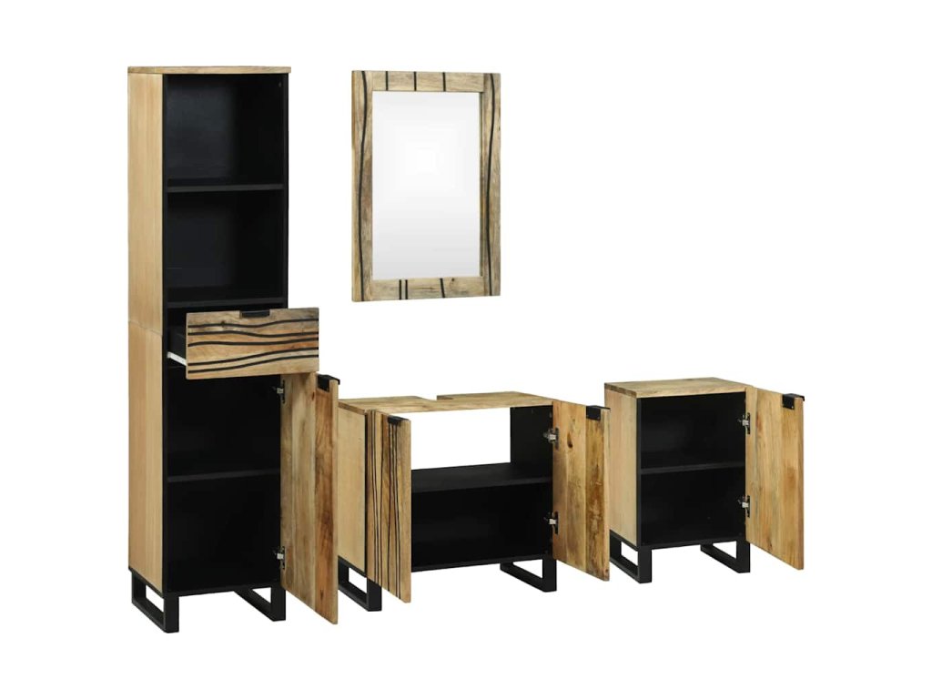 - Moderní elegance: Prvky jako tyčové úchyty a černé nohy přidávají moderní dojem této sady a dosahují tak ideální rovnováhy mezi designem a funkčností. Dodávají vaší koupelně styl a odrážejí vkus moderního domova.
