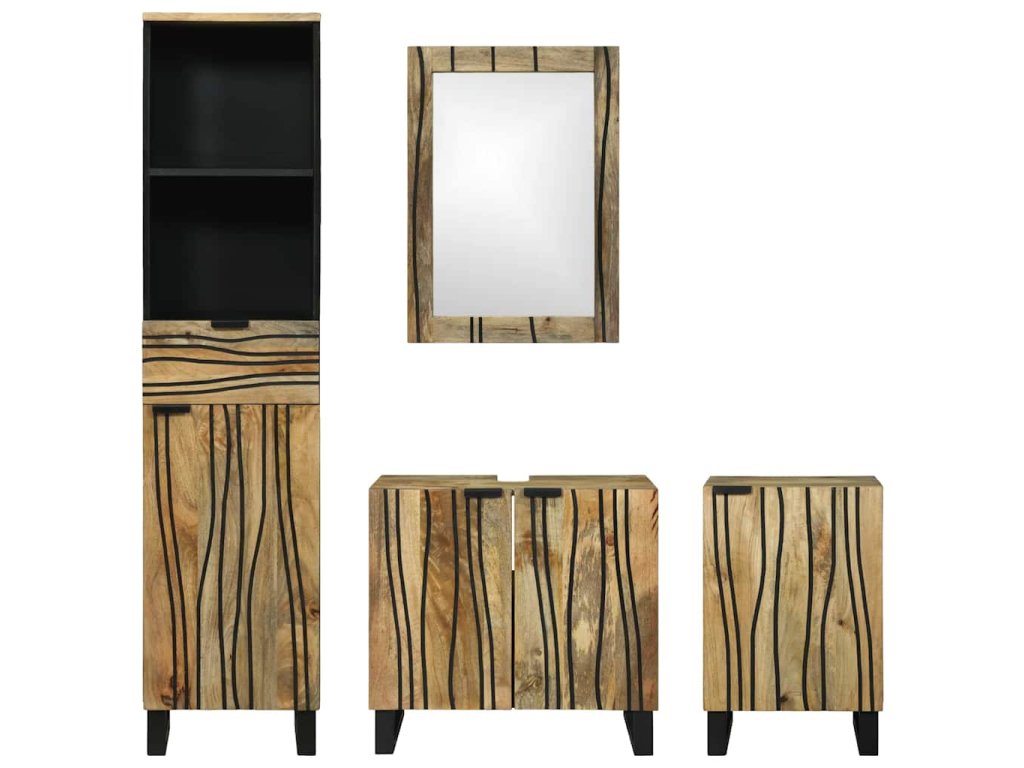 Tato moderní koupelnová sada přináší eleganci a praktičnost do vaší koupelny díky svému štíhlému designu a funkčnosti. Obsahuje prvky vyrobené z inženýrského dřeva a je skvělým spojením stylu a užitnosti. Její štíhlé linie a příjemný vzhled ji dělají ideální pro moderní prostory, přičemž nabízí dostatek úložného prostoru. Moderní vibe a nadčasový design sady obohacují každou místnost a poskytují vám praktické a stylové možnosti pro organizaci.