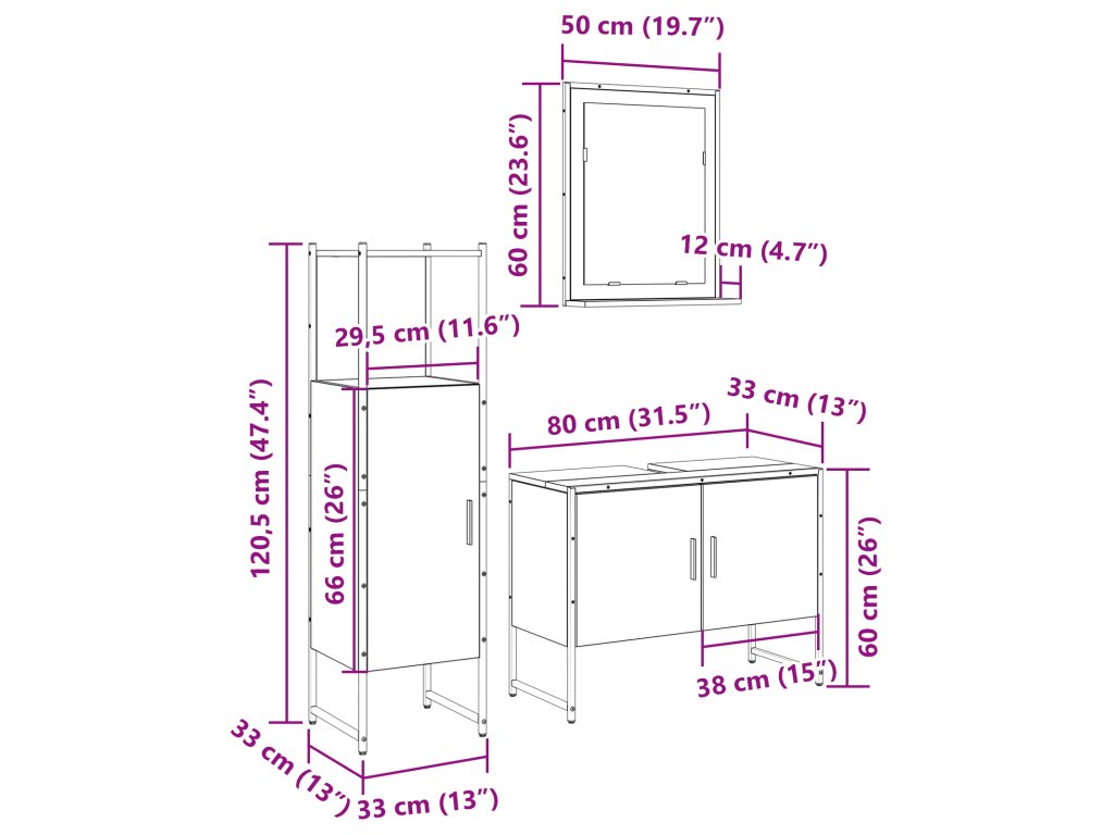 - 1 x Skříňka pod umyvadlo: 80 x 33 x 60 cm (D x Š x V)