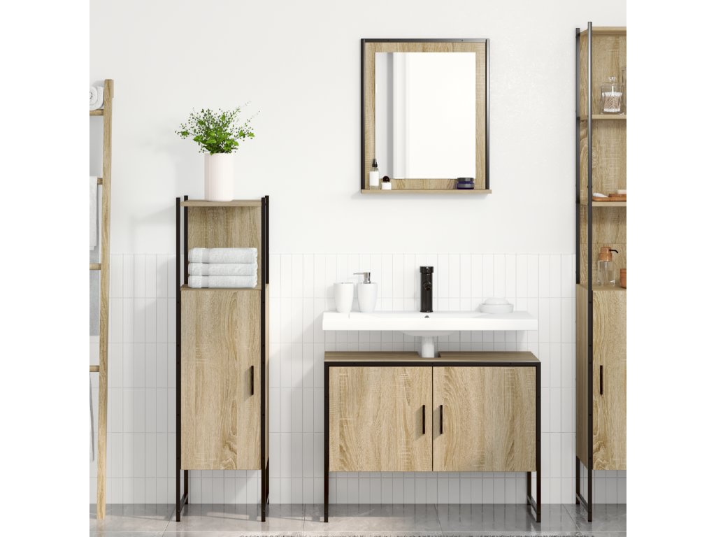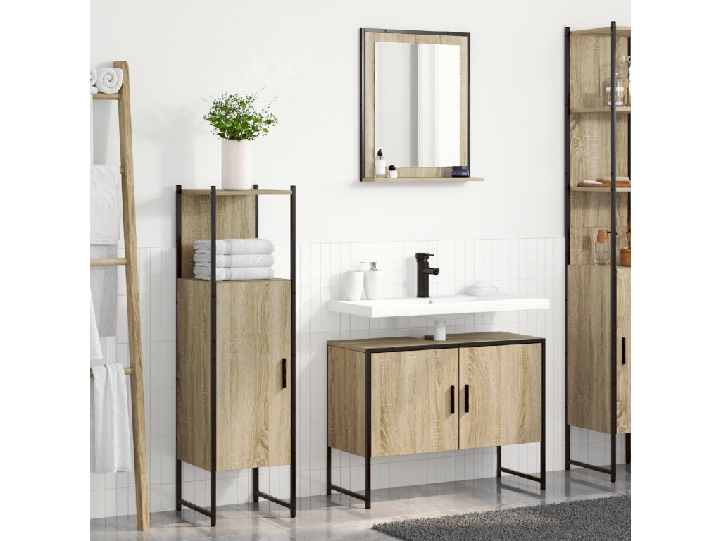 - Inženýrské dřevo: Nábytek je vyroben z inženýrského dřeva, což zajišťuje odolnost a sílu pro každodenní použití. Dokáže odolávat deformacím, což zvyšuje jeho trvanlivost a přináší hodnotu každé koupelně.