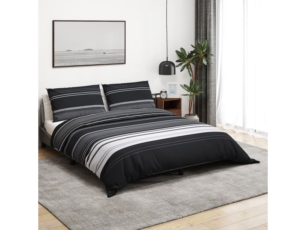 Sada ložního prádla černá a bílá 135 x 200 cm bavlna