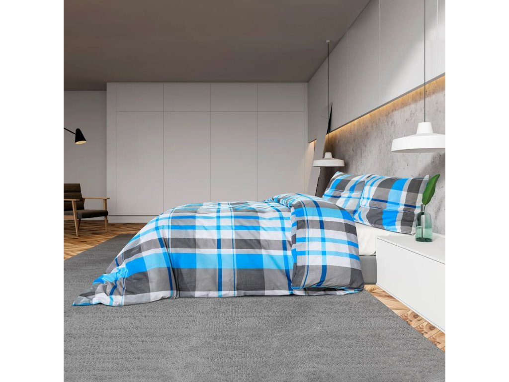 Sada ložního prádla modrá a šedá 135 x 200 cm bavlna