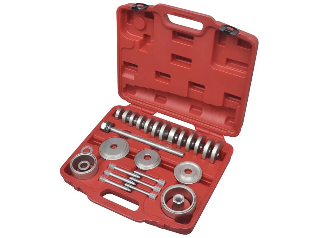 Tato sada nářadí na montáž a demontáž ložisek kol je skvělou volbou, pokud chcete odstranit nebo nasadit ložiska kol na pohon předního kola. Díky ní je tato práce opravdu snadná a není nutné při ní demontovat těhlici ani tlumič.
