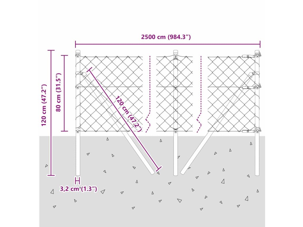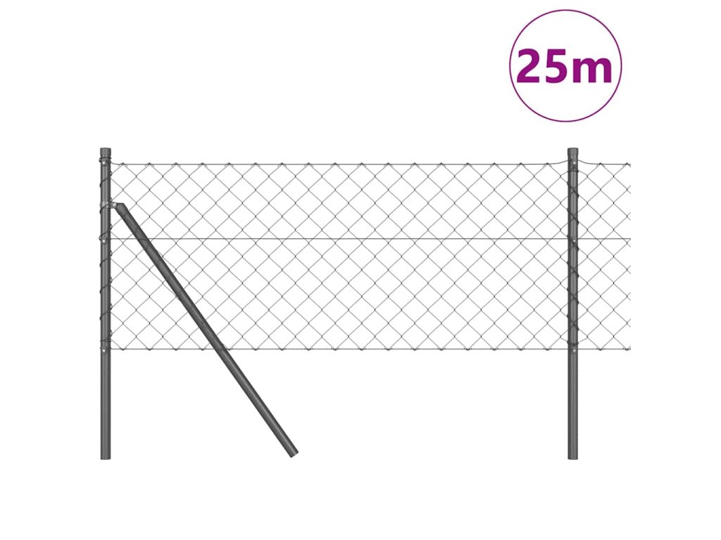 Řetězový plot se sloupy Šedá 0.8 x 25 m Ocel