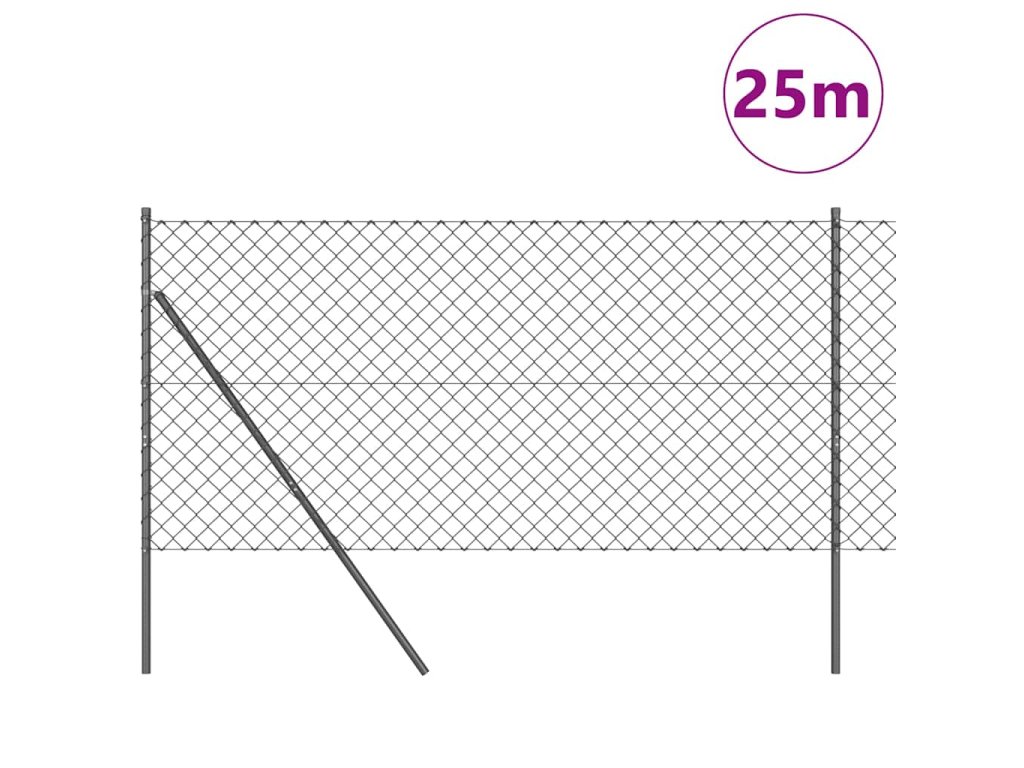 Řetězový plot se sloupy Šedá 1 x 25 m Ocel