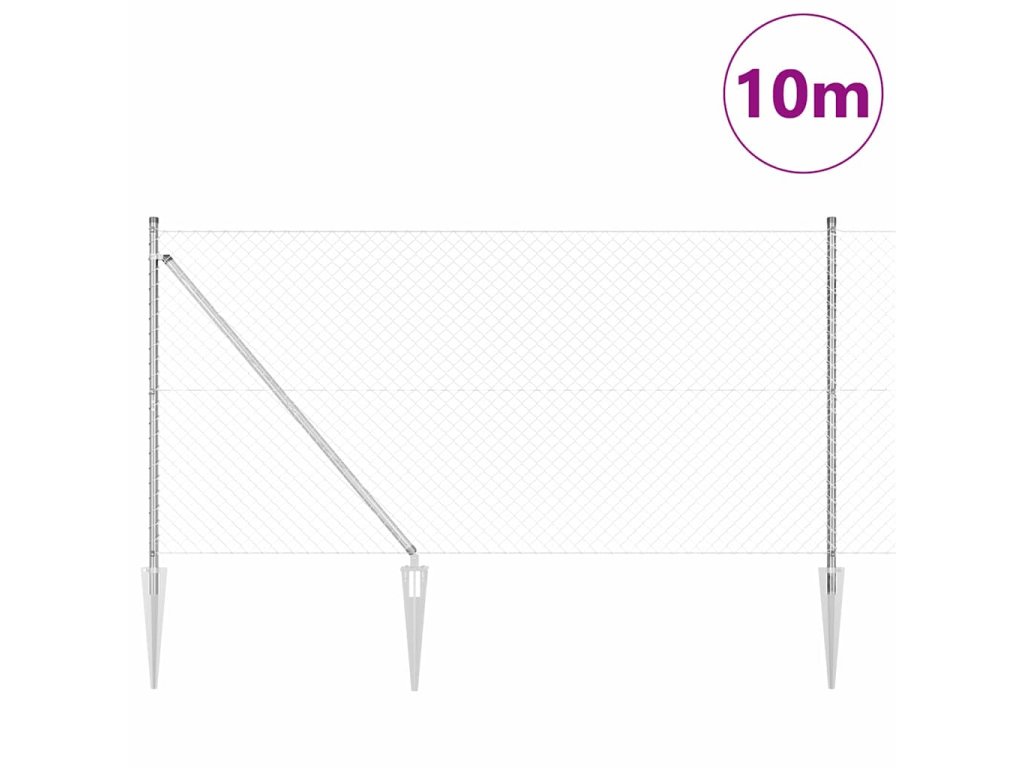 Řetězový plot se sloupy Stříbrná 1.4 x 10 m Ocel