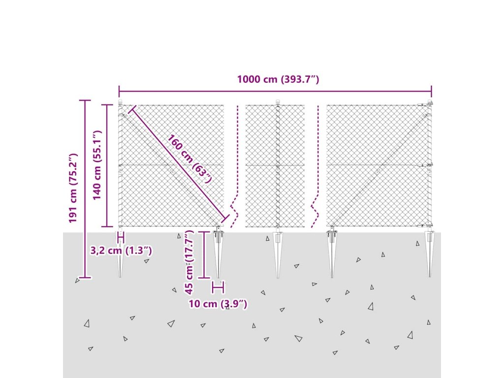Tento plot z řetězové vazby s sloupky je skvělá volba pro venkovní bariéru. Je postavený, aby vytvořil spolehlivou přepážku pro zahrady a terasy. Ocel má klasicky pevnou konstrukci a praktický design, díky čemuž se hodí skoro ke každému stylu zahrady. Poskytuje tvar a funkci jako hranice pozemku nebo soukromý štít.