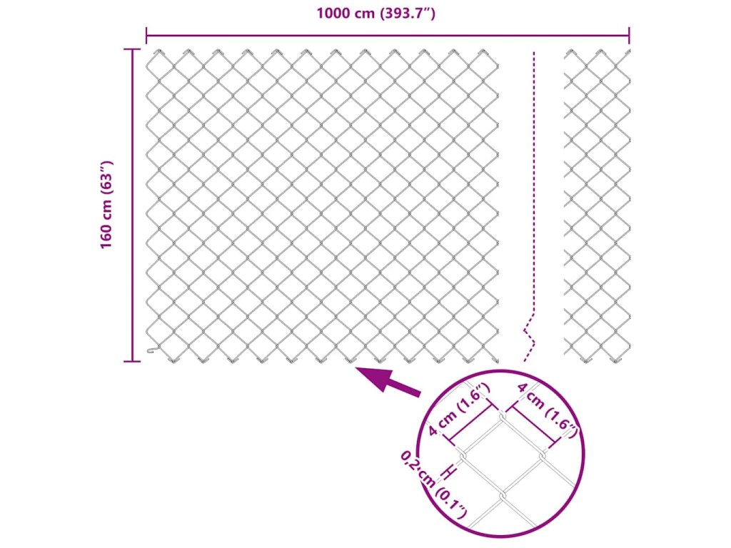 Řetězový plot se sloupy Stříbrná 1.6 x 10 m Ocel