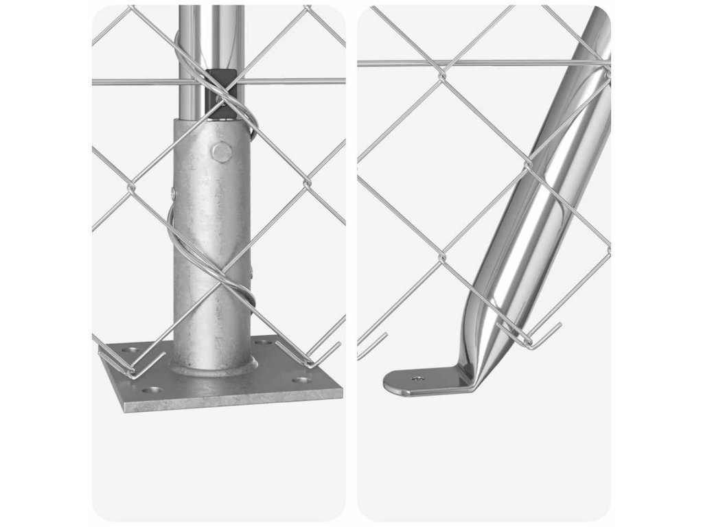 Tento plot z řetězové vazby s sloupky je skvělá volba pro venkovní bariéru. Je postavený, aby vytvořil spolehlivou přepážku pro zahrady a terasy. Ocel má klasicky pevnou konstrukci a praktický design, díky čemuž se hodí skoro ke každému stylu zahrady. Poskytuje tvar a funkci jako hranice pozemku nebo soukromý štít.