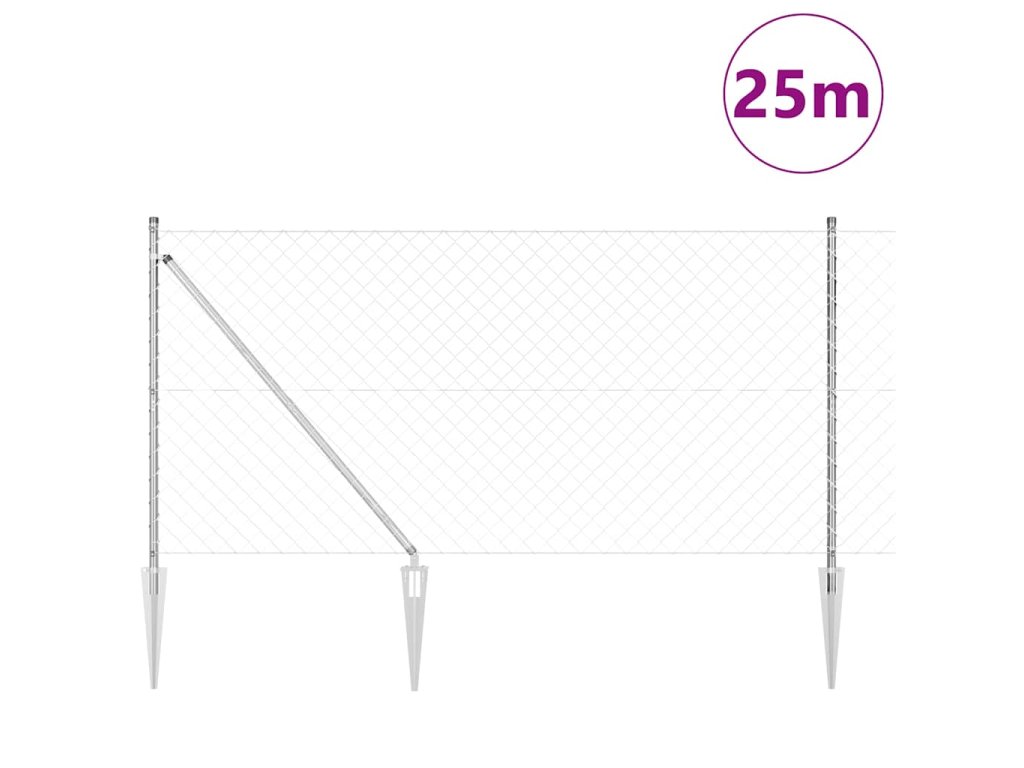 Řetězový plot se sloupy Stříbrná 1.2 x 25 m Ocel