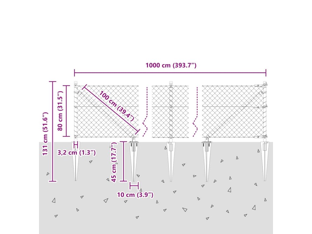 Řetězový plot se sloupy Stříbrná 0.8 x 10 m Ocel