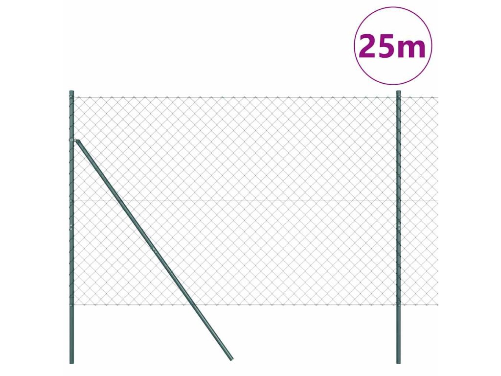 Řetězový plot se sloupy Zelená 1.6 x 25 m Ocel
