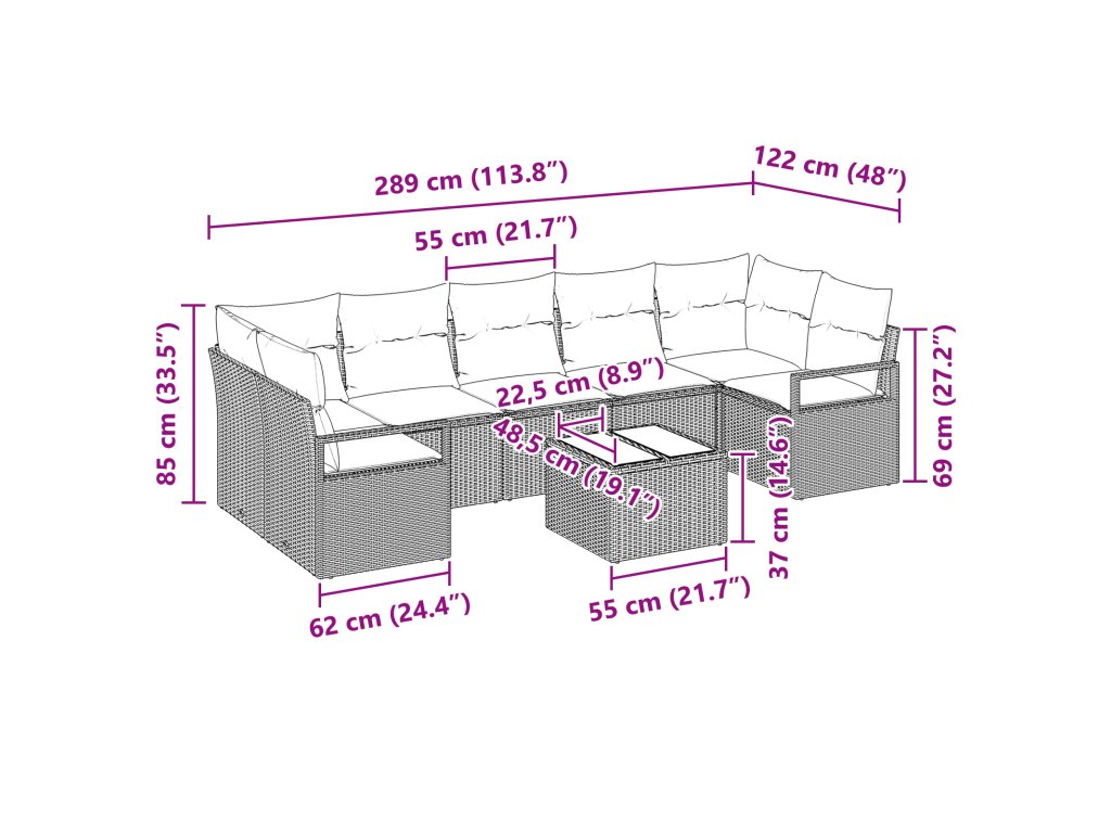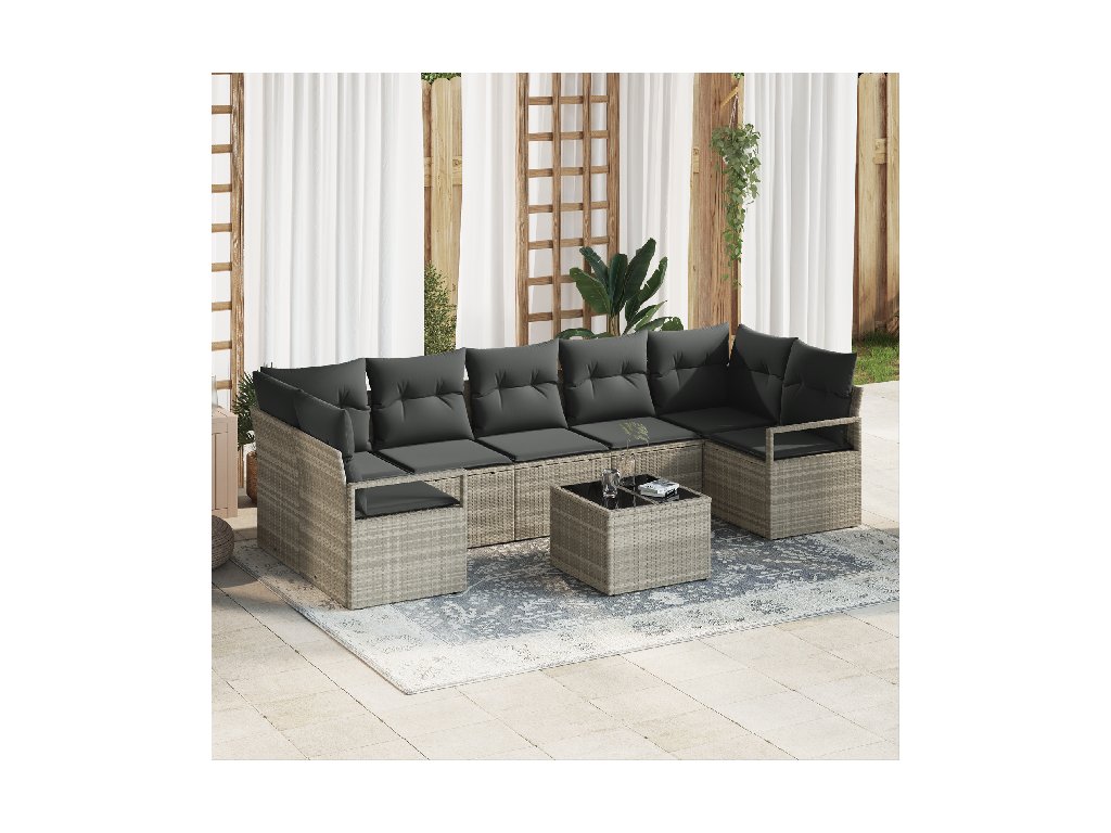 Kvalitní konstrukce z poly ratanu: Každý kousek je pečlivě vyrobený z poly ratanu, co odolává UV záření a i špatnému počasí. Moderní textura vypadá dobře v různých venkovních prostorách a prodlužuje životnost. Tento materiál zajistí, že nábytek pořád vypadá jako nový. Víceúčelové komponenty: Set obsahuje dvě rohová sedadla, tři středová sedadla, dvě pohovky s opěrkami a jeden stůl. Každý prvek se dá přizpůsobit podle potřeby a počtu hostů. Stůl z tvrzeného skla je nejen praktický, ale i stylový, ideální k setkání nebo relaxaci. Pohodlné a odnímatelné polštáře: Set má polštáře s pěnovou výplní, co drží v poly ratanu. Díky zipu je snadno sundáte a udržujete. To se hodí při sezónních změnách a zajišťuje pohodlí a jednoduchost při údržbě. Ideální venkovní použití: Tento set je skvělý pro zahrady nebo terasy, dodává komfort a styl, ať už máte rodinné oslavy nebo větší akce. Modulární design přizpůsobí se každé příležitosti. Bezproblémová údržba: Údržba je super jednoduchá; stačí jen utřít a zakrýt, když se nepoužívá, aby zůstal v top stavu. Takhle se zajišťuje připravenost na spontánní sezení venku a péče se postará o dlouhou životnost.- Barva: Světlá šedá a tmavá šedá