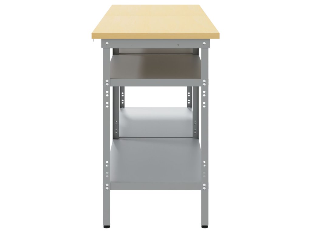 - Kovové police Pracovní stůl má plechové polic, které ti pomožou udržet nástroje a potřeby na svém místě. Tyhle police jsou dost silné, aby zvládly velkou zátěž, což je důležité pro udržení pořádku, hlavně při náročnějších projektech.