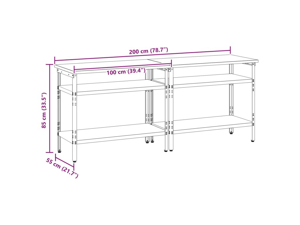 Sada pracovního stolu s policí 2 pcs Šedá 200 x 55 x 85 cm Ocel