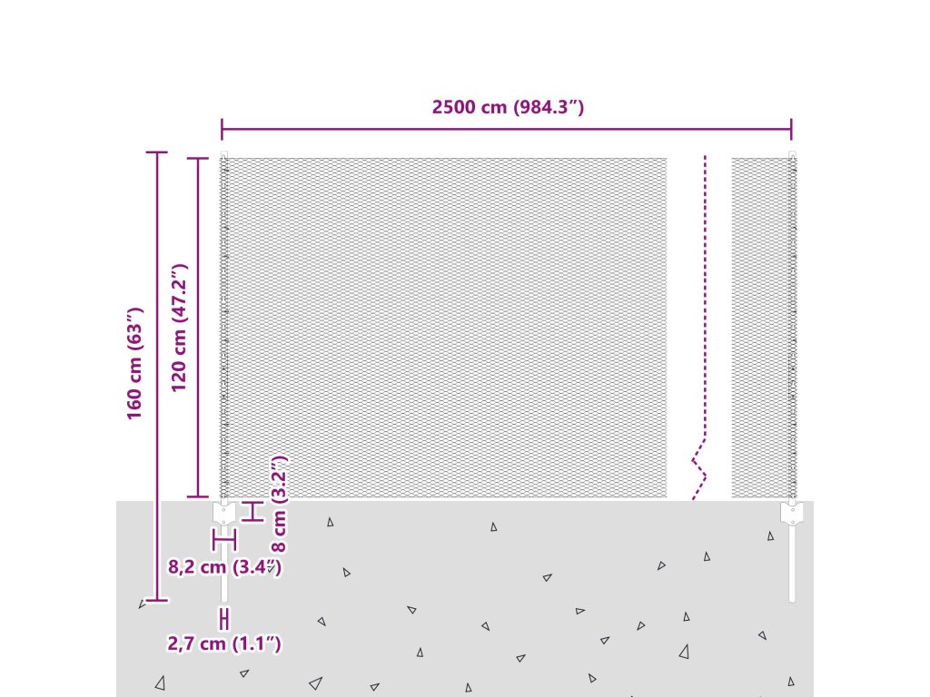 - Celkové rozměry: 2500 x 2,7 x 120 cm (D x Š x V)