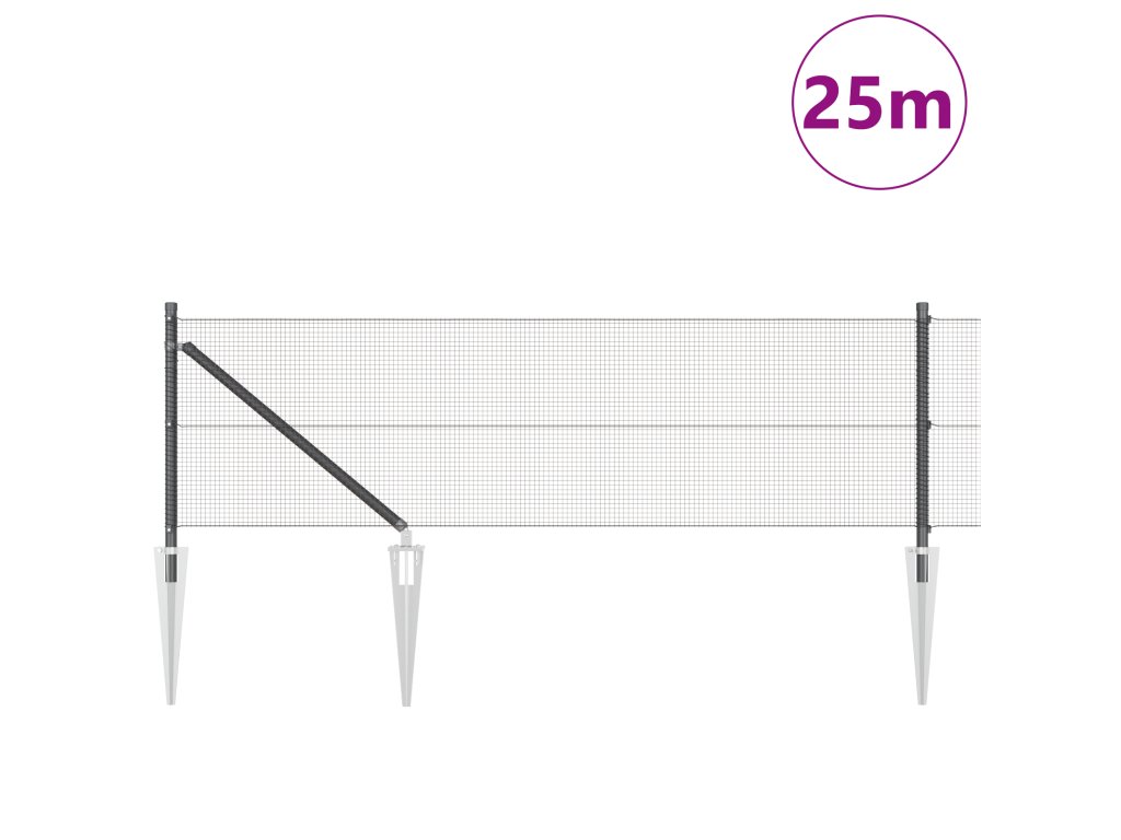 Plotový sloupek. Šedá 25 x 0,5 m (pletivo 12 x 12 mm) Ocel