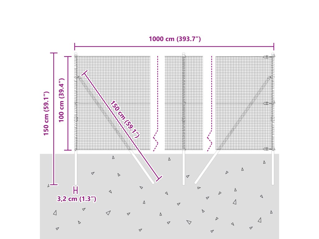 - Celkové rozměry: 1000 x 3,2 x 100 cm (D x Š x V)