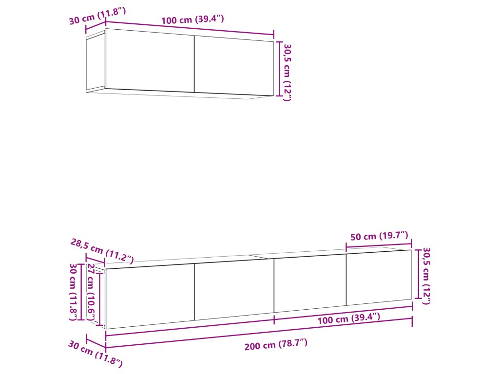 - 2 x televizní skříňka: 60 x 30 x 30 cm (ŠxHxV)
