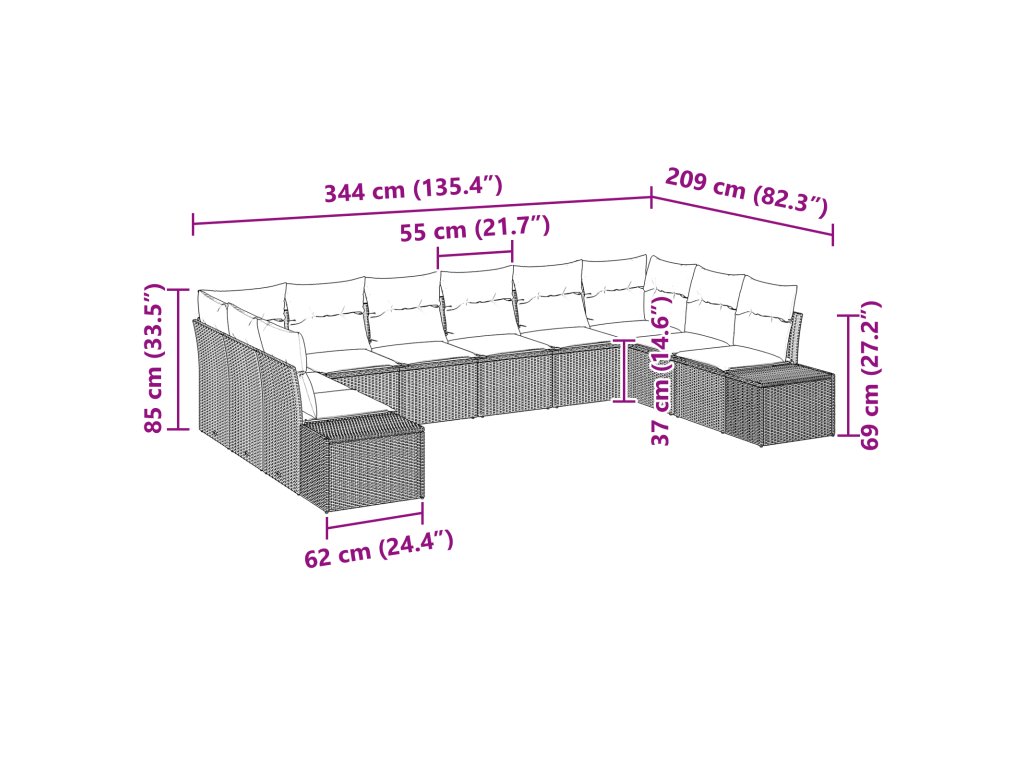 Sada zahradních pohovek 10 pcs Světle šedá polyratan