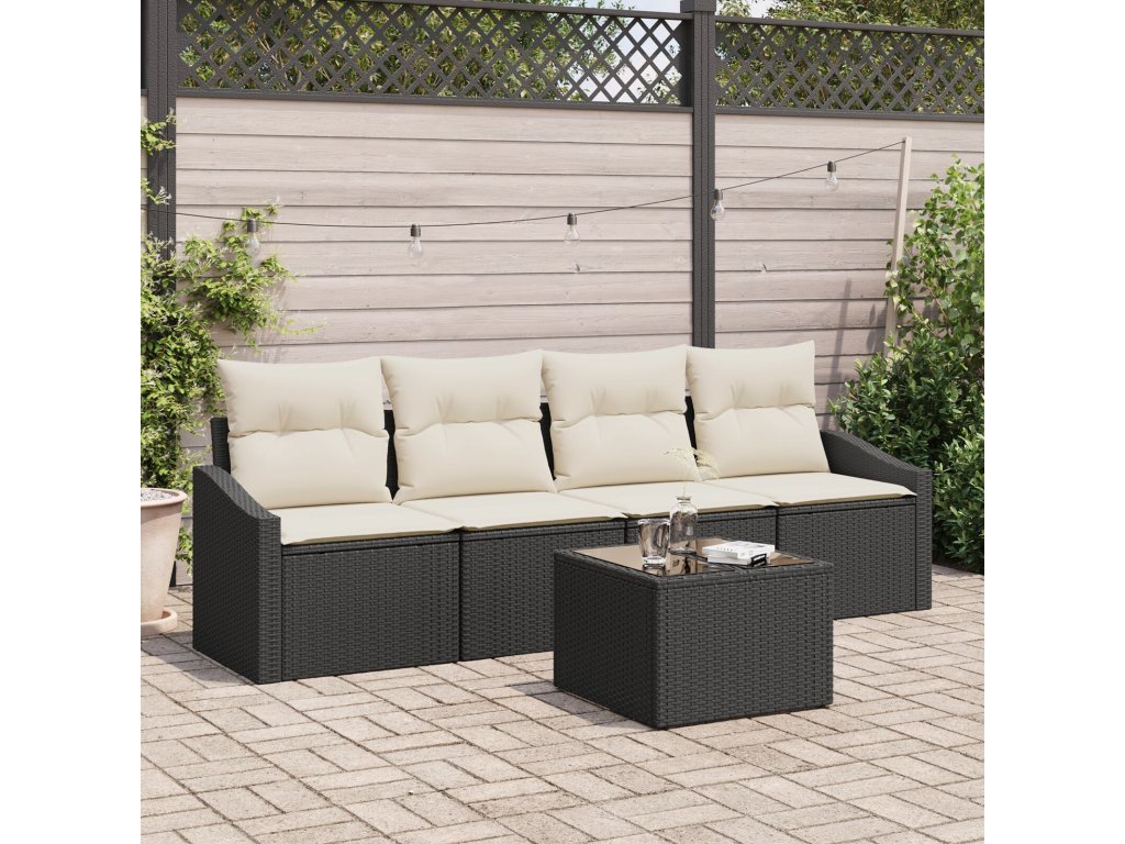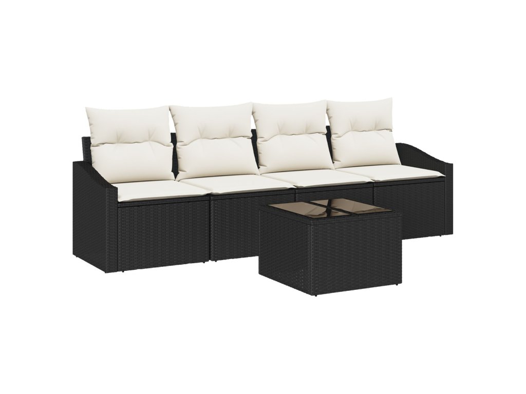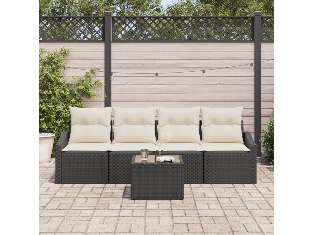 Set pohovek s polštářem 5 pcs Černá a krémová polyratan