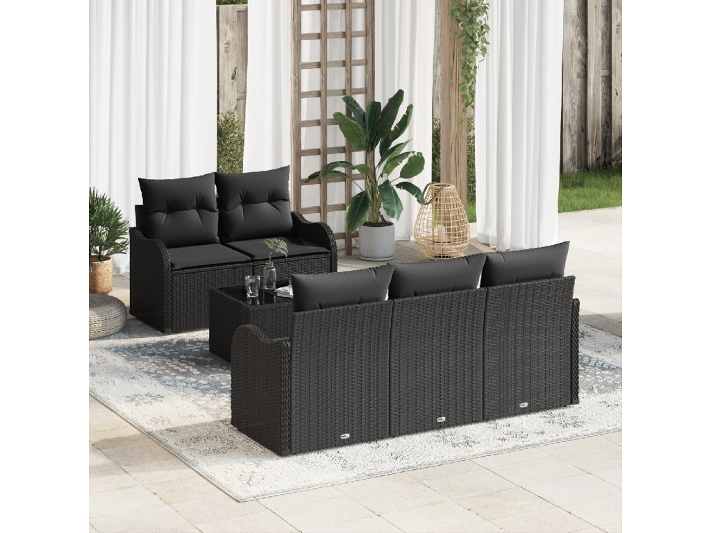 Materiály: Tento set je převážně z poly ratanu, což je materiál odolný a vizuálně hezký. Je pohodlný, pevný a odolný proti povětrnostním vlivům. Polyesterové vlákno zajistí příjemný pocit a chrání před vlhkostí a UV zářením. Ocelové nohy zajišťují stabilitu a dlouhou životnost. Zahrnuté komponenty: Souprava obsahuje střední sedadlo, čtyři pohovky s opěrkami a robustní stůl. Skleněná deska stolu přidává elegantní a trvanlivý povrch pro nápoje a dekorace. Křivky a opěrky z poly ratanu zvyšují pohodlí pro dlouhé posezení. Ocelové nohy garantují pevnou oporu na jakémkoliv povrchu. Funkce/design: Díky modulárnímu designu můžete přizpůsobit uspořádání sedadel podle vašich potřeb. Lehká konstrukce umožňuje snadnou manipulaci a přetváření, takže se snadno přizpůsobí změnám v zahradě. UV-odolné materiály chrání před slunečním zářením, což zajišťuje dlouhou životnost. Doporučeno pro: Ideální pro slunné terasy, zahrady nebo venkovní kouty, umožňuje užít si pohodlné posezení venku. Díky modulárnímu designu podporuje různá uspořádání, ať už jde o malé sezení nebo velké akce. Ať už plánujete letní brunch nebo si chcete jen přečíst knihu, tento set se stane centrem vaší venkovní oázy. Péče a údržba: Udržujte soupravu v dobrém stavu jednoduše otřením vlhkým hadříkem a používáním ochranných obalů, když se nepoužívá. Pro delší životnost uchovávejte polštáře v suchu. Tyto jednoduché úkony zajistí, že váš set zůstane atraktivní s minimálním úsilím.- Barva: Černá