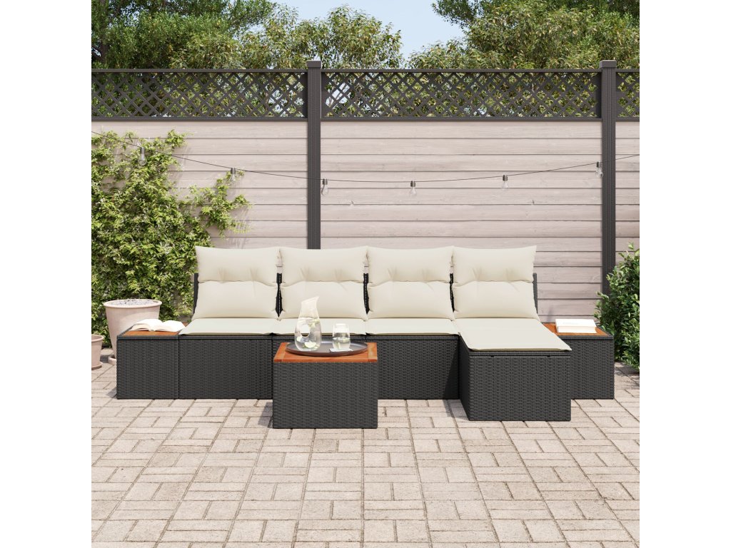 Sada zahradních pohovek s polštářem 6 pcs Černá Poly ratan