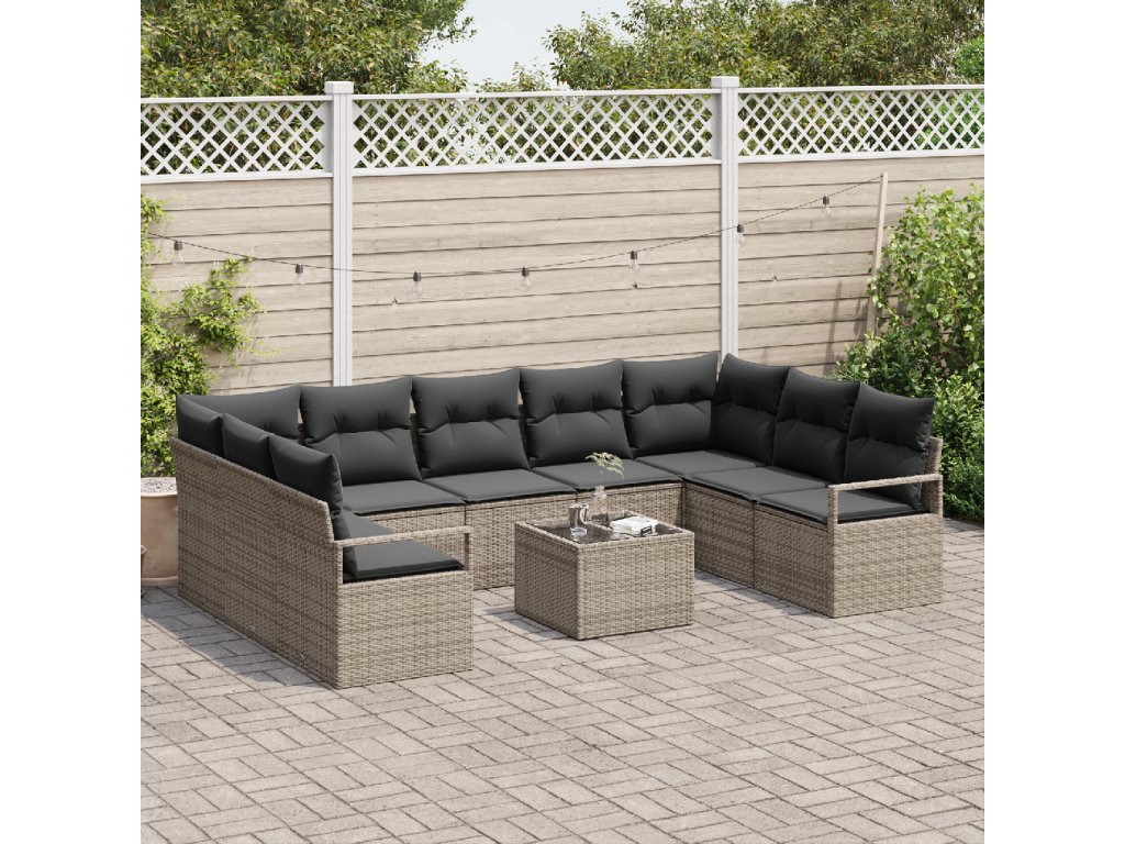 Set pohovek s polštářem 10 pcs Světle šedá polyratan