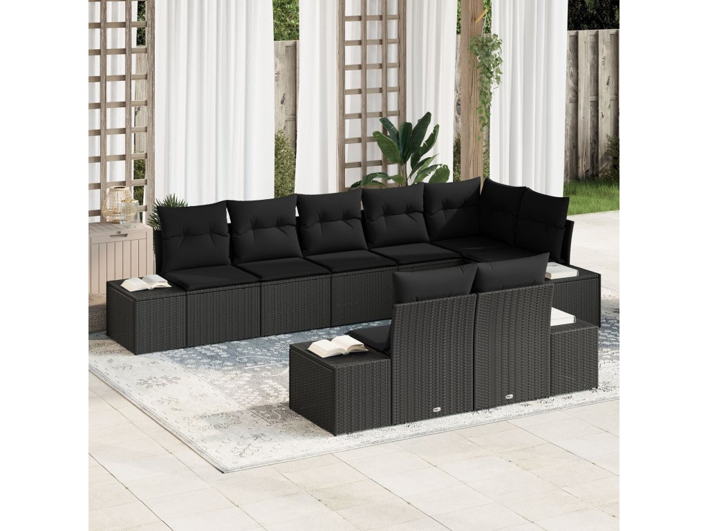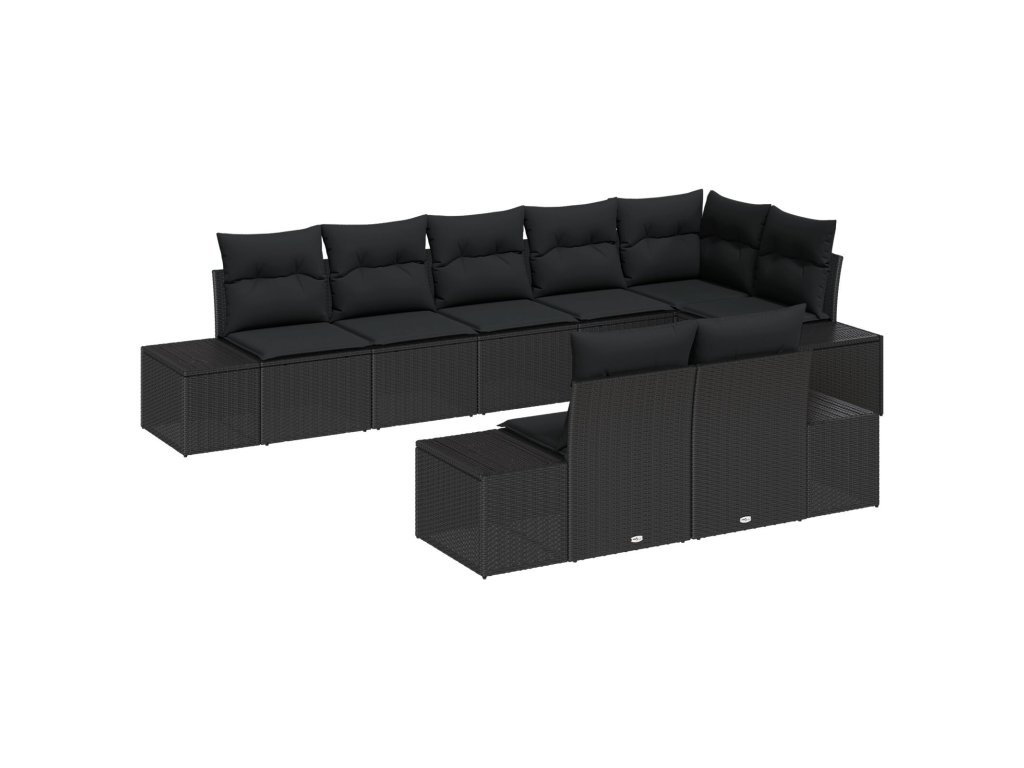 Sada zahradních pohovek s polštářem 8 pcs Černá Poly ratan