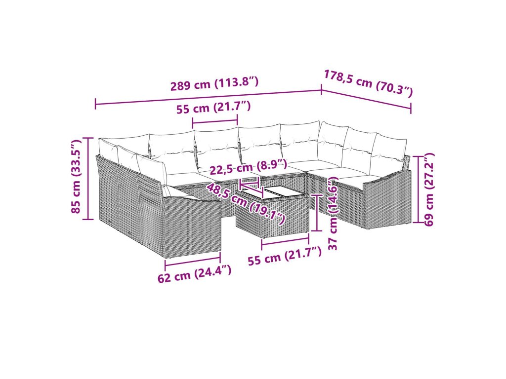 Sada zahradních pohovek 10 pcs Šedá Poly ratan